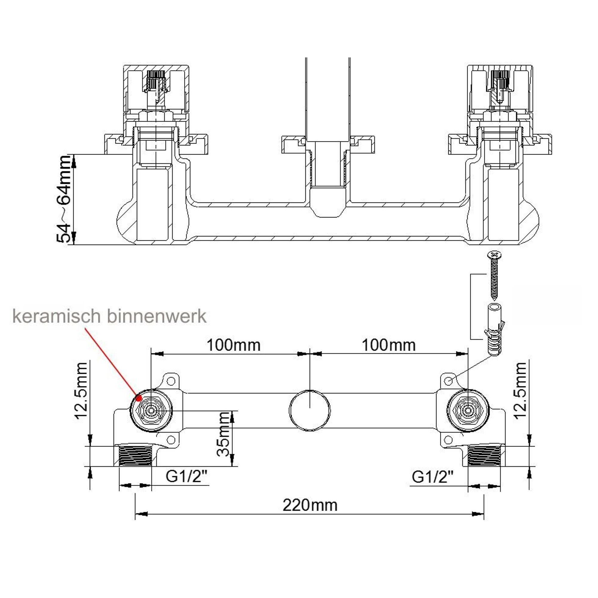 Xellanz Caral/Cross inbouwdeel wastafelmengkraan 2-knops