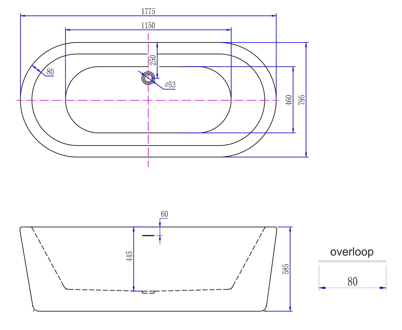 Met een lengte van 178 cm en een breedte van 80 cm biedt dit vrijstaande bad opvallend veel binnenruimte. De ovale vorm en centrische afvoer zorgen ervoor dat je aan beide zijden comfortabel kunt liggen, zonder lastige hoeken of oneffenheden. Dat maakt het ideaal voor lange wellnessmomenten, maar ook heel geschikt als je samen wilt baden. De hoogte van circa 58,5 cm geeft je bovendien een fijne, diepe zit waardoor je lichaam goed onder water komt en je spieren optimaal kunnen ontspannen. Zo haal je met dit ligbad een stukje wellnessgevoel in huis, gewoon in je eigen badkamer.