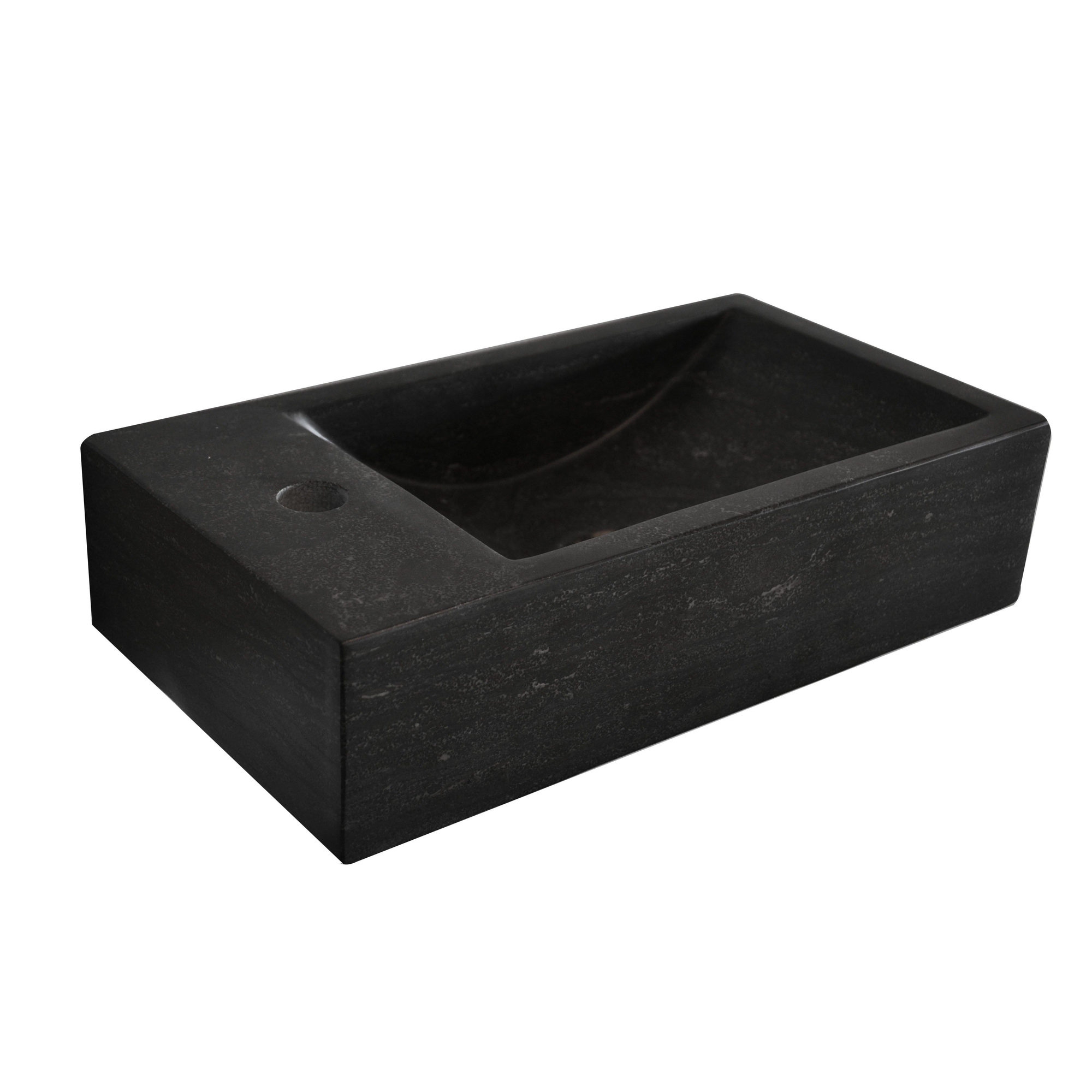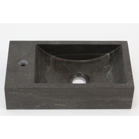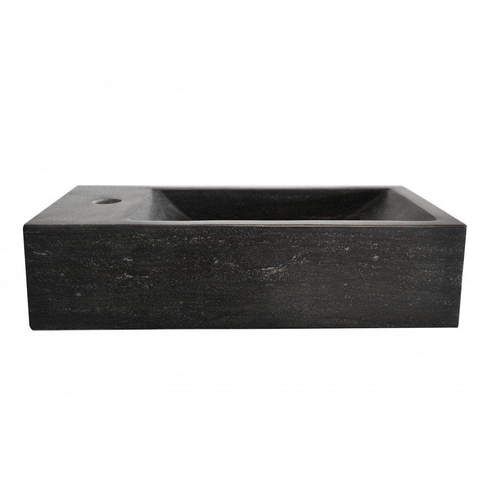 Deze wastafel heeft een licht gezoete afwerking. Hierbij wordt de wastafel lichtjes opgeschuurd maar blijft de uitstraling van de steen intact. Deze afwerking zorgt voor een mooie, lichte matglans.