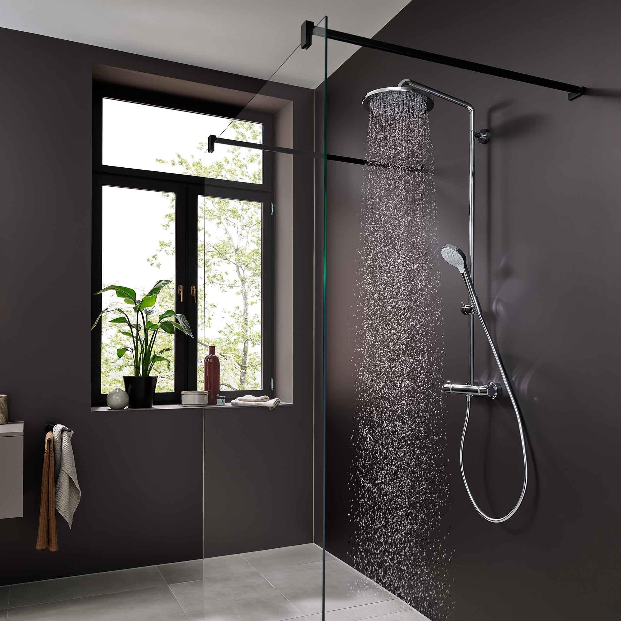Met zijn glanzende chromen afwerking en strakke lijnen geeft deze douche een moderne en tijdloze uitstraling aan je badkamer. Het design is niet alleen mooi om te zien, maar ook doordacht vormgegeven voor een naadloze integratie in vrijwel elk interieur. De royale hoofddouche met een diameter van 280 mm zorgt voor een indrukwekkende regenstraal die je douche-ervaring visueel en voelbaar verrijkt. Zo voeg je niet alleen functionaliteit toe, maar ook een vleugje luxe die je badkamer direct een upgrade geeft.