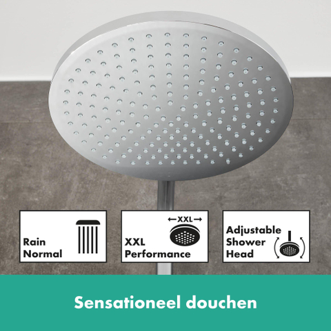 - Hoofddouche van 240 mm met regenstraal voor een XXL douche-ervaring
