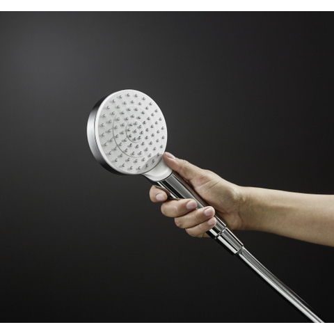 Met zijn glanzende chroomafwerking en witte straalplaat is deze handdouche een echte blikvanger. Het design is zorgvuldig vormgegeven met zachte, afgeronde lijnen die een harmonieuze sfeer creëren in elke badkamer. Dit tijdloze uiterlijk maakt het eenvoudig om de handdouche te combineren met diverse badkamermeubels en accessoires. Zo voeg je moeiteloos een vleugje elegantie toe aan jouw dagelijkse routine. Het frisse contrast zorgt bovendien voor een moderne uitstraling die nooit uit de mode raakt, waardoor je badkamer er altijd verzorgd en up-to-date uitziet.