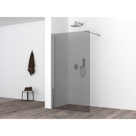 De combinatie van rookglas en chroomkleurige profielen geeft deze douchewand een moderne en verfijnde uitstraling. Het rookglas zorgt voor een subtiele mate van privacy zonder het licht te blokkeren, waardoor je badkamer ruimtelijk en licht blijft aanvoelen. Het chroomprofiel en de stabilisatiestang voegen een glanzend accent toe dat perfect past bij eigentijdse badkamerinrichtingen. Deze materialen zijn niet alleen stijlvol, maar ook duurzaam en bestand tegen vochtige omstandigheden. Zo kies je voor een product dat zowel esthetisch als functioneel overtuigt en jarenlang meegaat.Kenmerken: