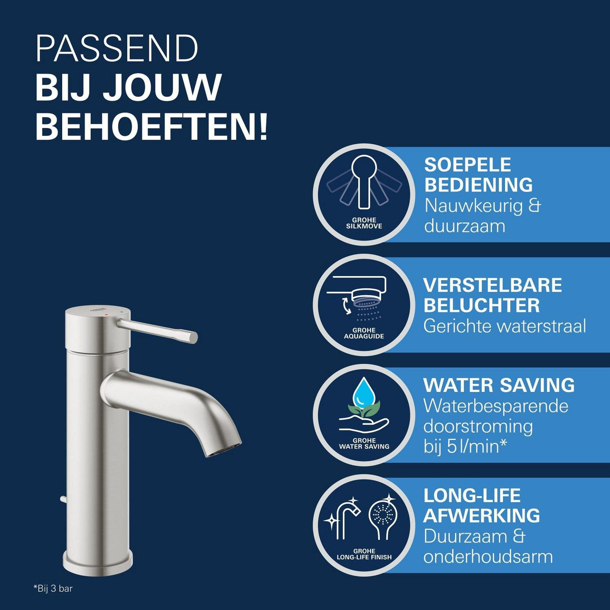 GROHE Essence new Wastafelkraan Opbouw - uitloop 11.6cm - S-size - waste - supersteel
