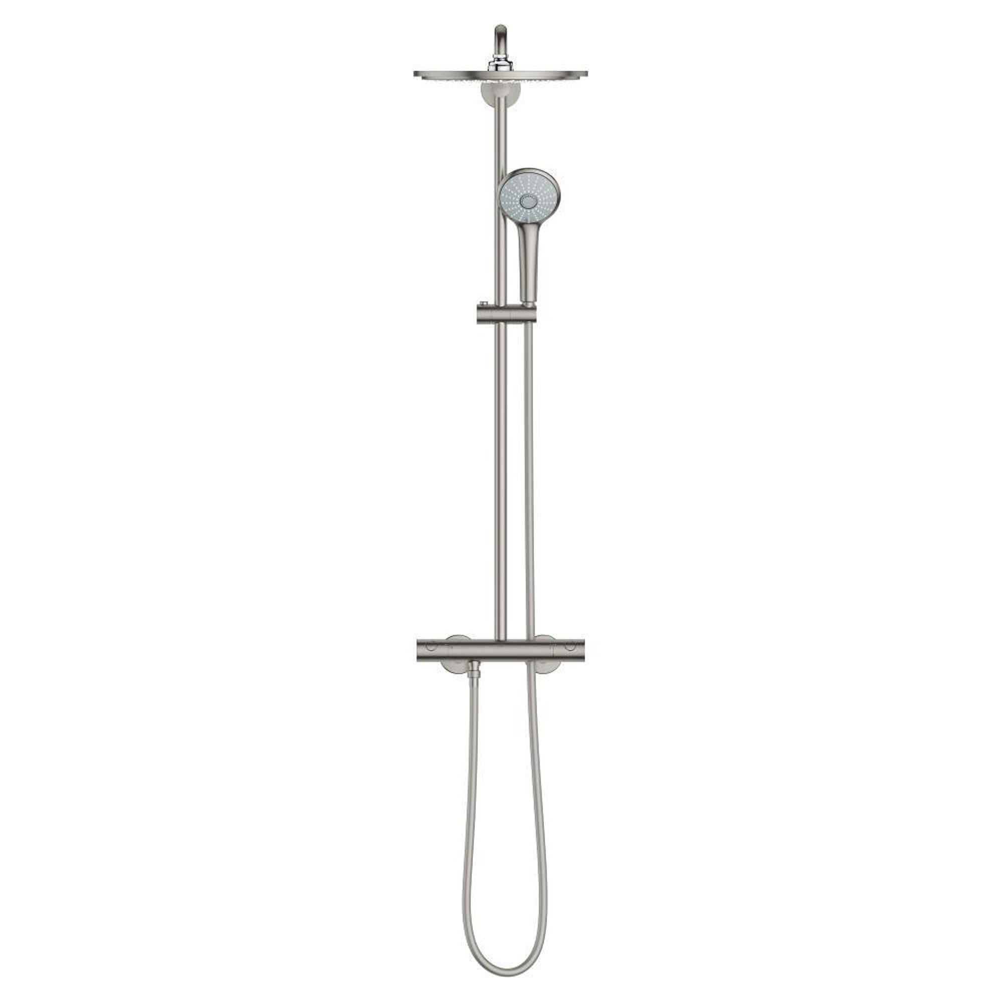 Dit systeem is gebouwd om lang mee te gaan. De SuperSteel afwerking is niet alleen mooi, maar ook bijzonder bestendig tegen krassen en verkleuring. Dankzij de innovatieve GROHE SpeedClean sproeigaatjes houd je de douche eenvoudig kalkvrij, wat de levensduur van het product aanzienlijk verlengt. Bovendien zorgt de GROHE Inner WaterGuide ervoor dat de handdouche niet oververhit raakt, waardoor de chroomlaag beschermd blijft. Met deze duurzame materialen en technologieën investeer je in een product dat jarenlang betrouwbaar blijft functioneren en er als nieuw blijft uitzien, zelfs bij intensief dagelijks gebruik.