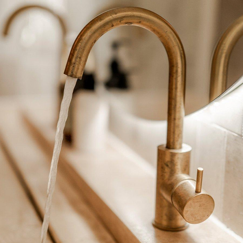 Zo wordt de finish soms lichter of juist iets donkerder en gaat het materiaal leven. Er ontstaan kleine oneffenheden, die de kraan een unieke karakter geven. Het patina van de kraan is onvoorspelbaar en daarmee helemaal uniek.