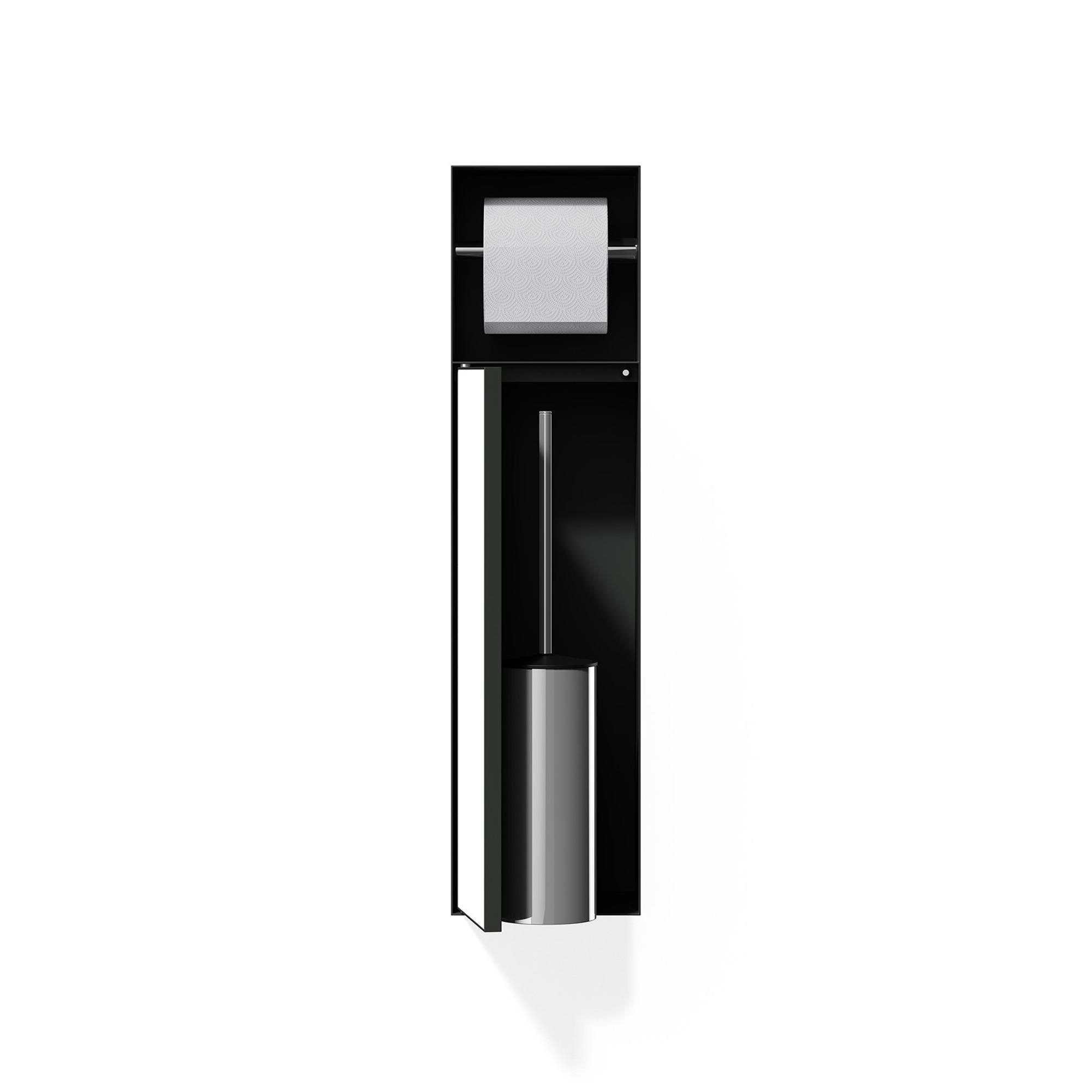 De Looox Closed closetborstelgarnituur straalt stijl en klasse uit dankzij het minimalistische design en de luxe antraciete kleur. Het strakke ontwerp met subtiele details zorgt voor een verfijnde uitstraling in de badkamer. Deze closetborstelgarnituur voegt niet alleen functionaliteit toe, maar dient ook als een decoratief element dat de ruimte verfraait en een gevoel van elegantie creëert.