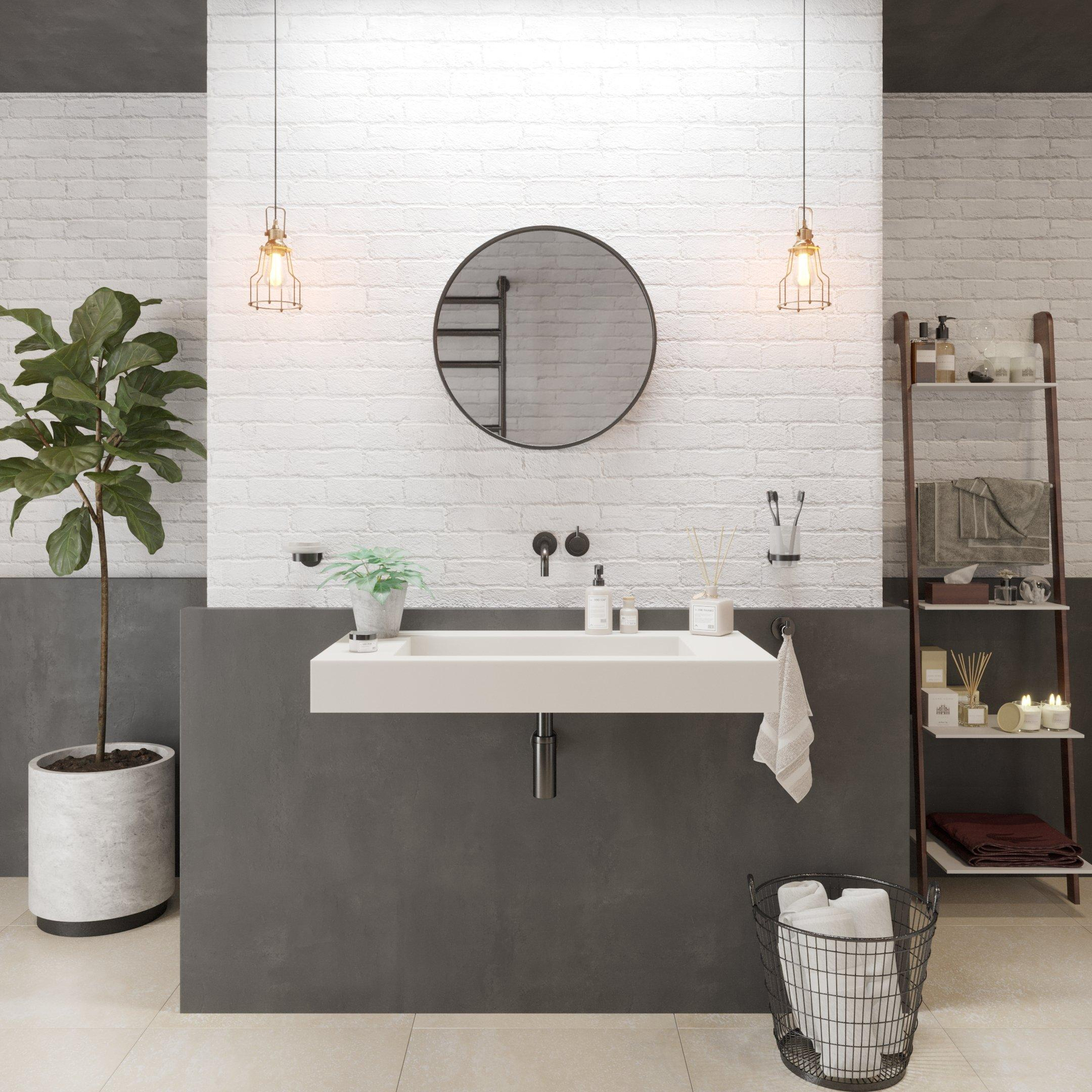 Met zijn strakke, rechthoekige vorm en matte witte uitstraling is deze wastafel een perfecte keuze voor wie een moderne, minimalistische badkamer wil creëren zonder in te leveren op comfort. De royale maat van 90 cm biedt volop ruimte om met twee personen tegelijk de wasbak te gebruiken, terwijl de ononderbroken lijnen en het ontbreken van kraangaten zorgen voor een rustig, hoogwaardig aanzicht. Dit model komt bijzonder mooi tot zijn recht in een designbadkamer, een stijlvolle gezinsbadkamer of een luxe hotelsfeer, maar past net zo goed in een compactere ruimte waar je één eyecatcher wilt laten spreken. Dankzij het sterke, onderhoudsvriendelijke solid surface materiaal is het bovendien een slimme keuze als je dagelijks gemak, hygiëne en duurzaamheid belangrijk vindt.