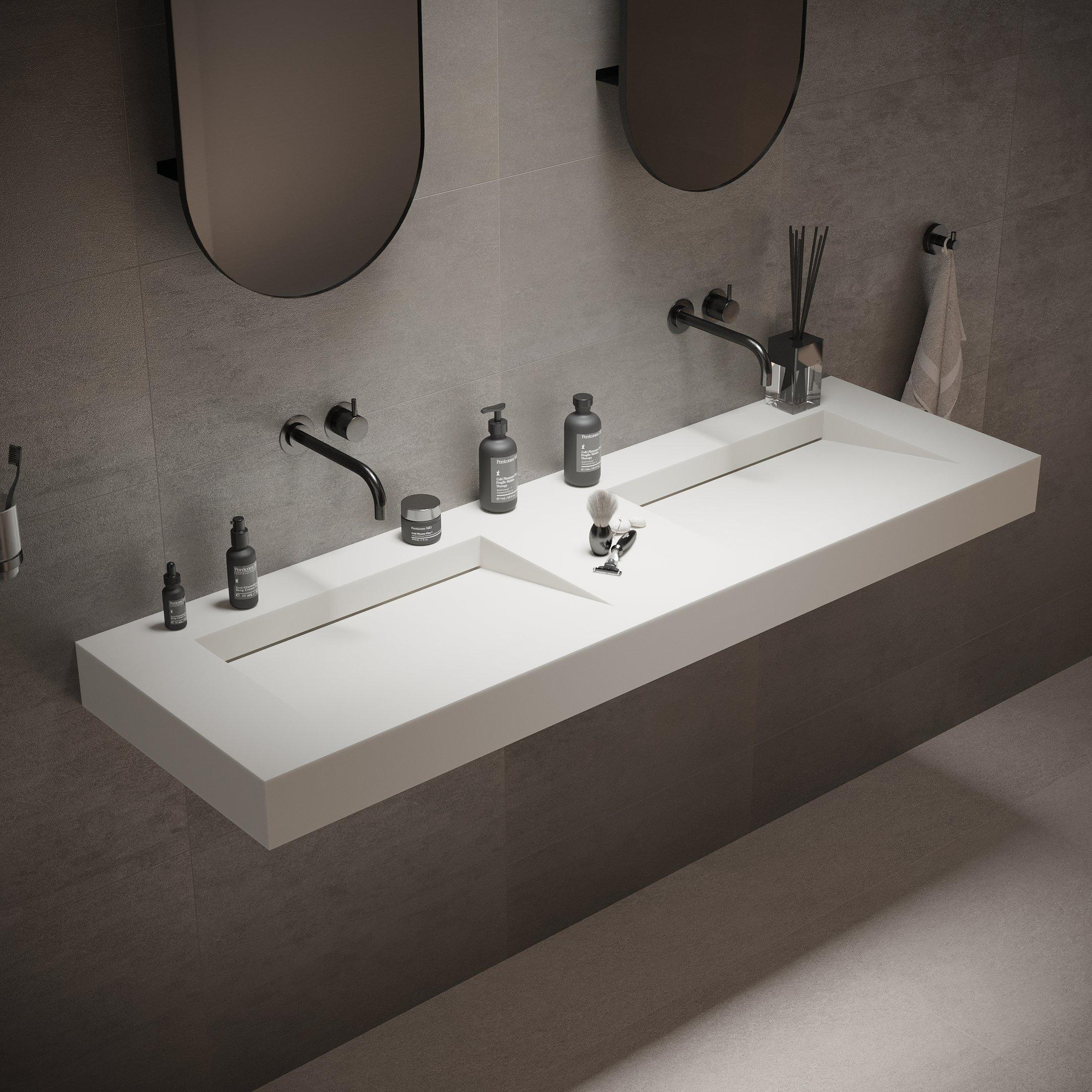 - Royale dubbele wastafel van 150x46 cm, ideaal voor koppels of gezinnen