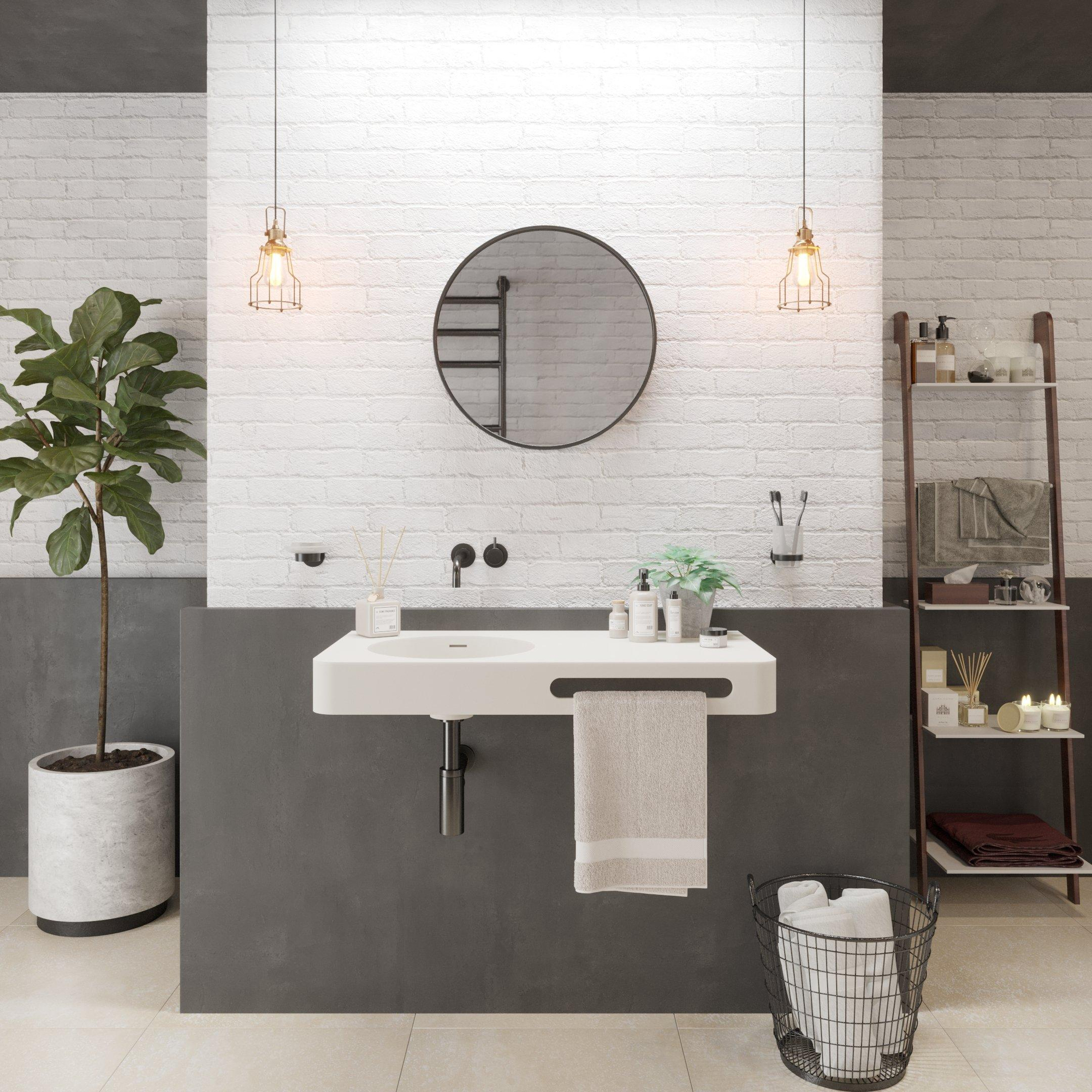 - Neutrale mat witte kleur combineert moeiteloos met vrijwel elke tegel en badkamerstijl
