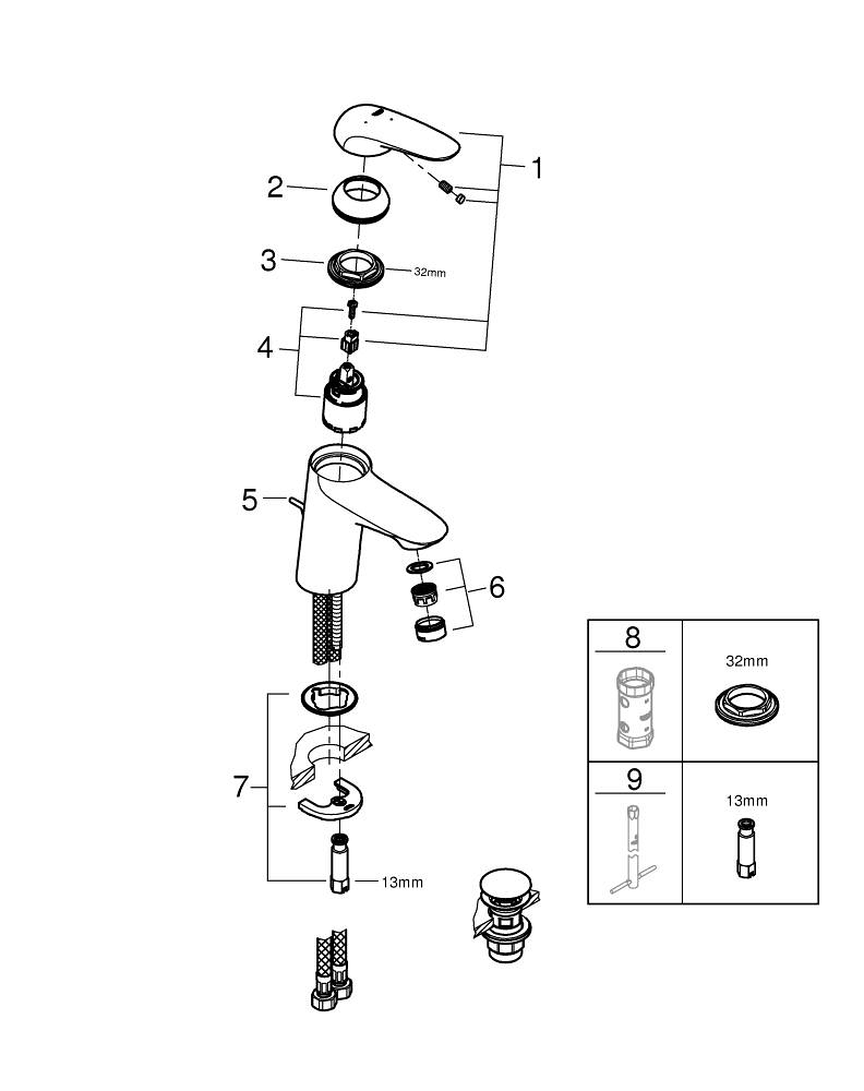 GROHE Wave New waterbesparende wastafelkraan M size ES met push open garnituur chroom