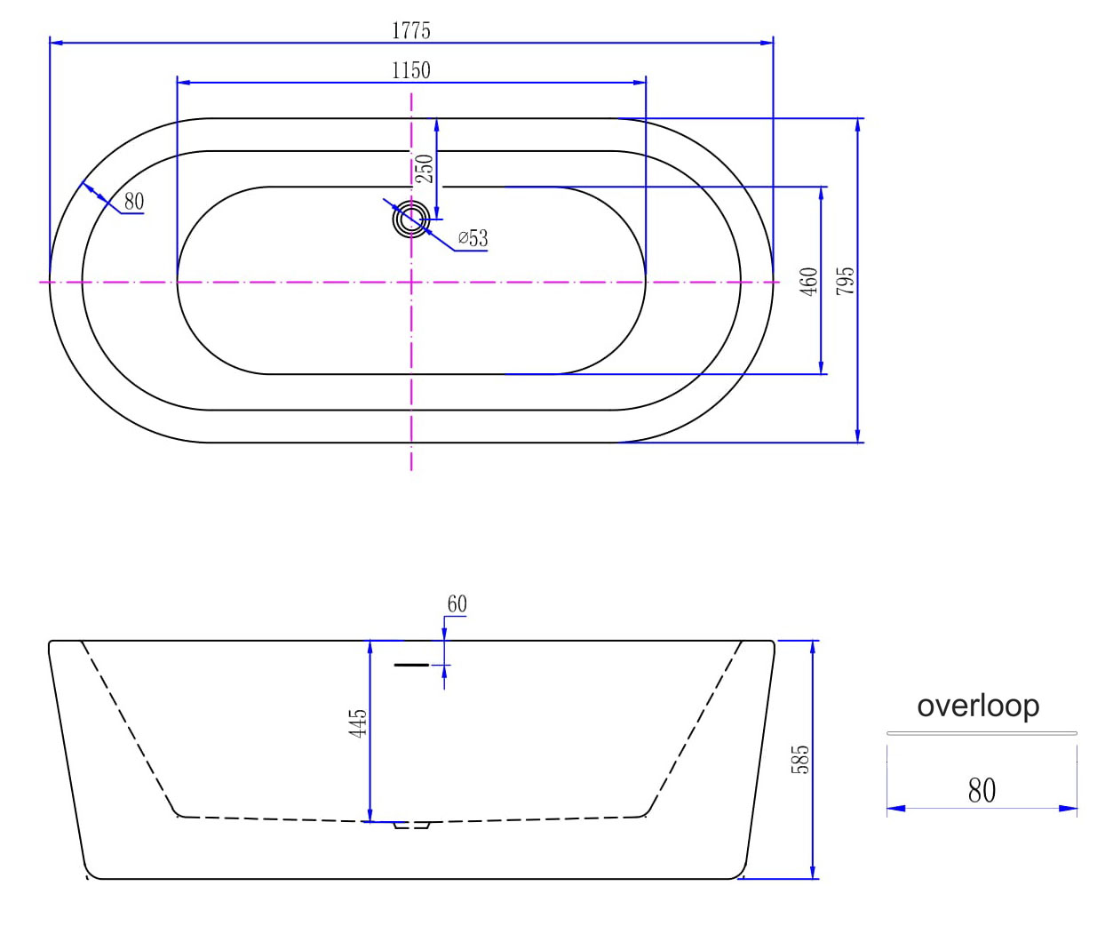 De ovale vorm en royale maatvoering van 178 x 80 cm zorgen voor een zeer prettig ligcomfort. Het gladde, glanzende acryl voelt direct warm aan wanneer je instapt, waardoor je niet eerst door een koud oppervlak heen hoeft te “wennen”. Met een inhoud van circa 250 liter kun je het bad goed vullen voor een echt ontspannend ligbad, zonder onnodig water te verspillen. De rond afgewerkte binnenzijde ondersteunt je lichaam op een natuurlijke manier, wat vooral fijn is als je na een drukke dag wilt uitrusten of als je regelmatig last hebt van gespannen spieren. Doordat het bad vrij in de ruimte geplaatst wordt, kun je bovendien zelf bepalen vanaf welke kant je instapt en hoe je het in de ruimte oriënteert voor maximaal comfort en bewegingsvrijheid.