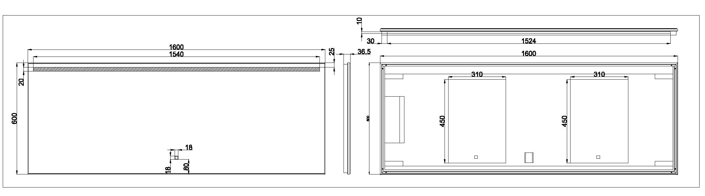 Voorzien van twee spiegelverwarmings-matjes van 250x350mm ter voorkoming van condensvorming