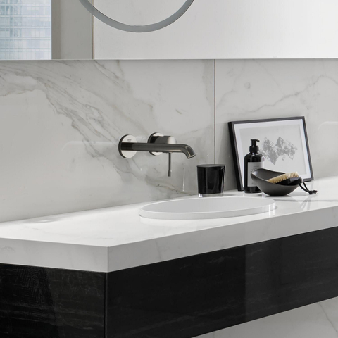 De kraan valt direct op door zijn moderne en minimalistische ontwerp, dat dankzij de geborsteld hard graphite finish een warme en eigentijdse uitstraling krijgt. Dit maakt het een perfecte keuze voor wie een strakke, maar toch uitnodigende sfeer wil creëren. De wandmontage zorgt voor een opgeruimde look en geeft je wastafelmeubel extra ruimte. Door de subtiele kleur en het hoogwaardige materiaal past deze kraan moeiteloos bij verschillende badkamerstijlen, van industrieel tot modern en zelfs klassiek. Zo voeg je een stijlvol element toe dat je badkamer echt afmaakt.