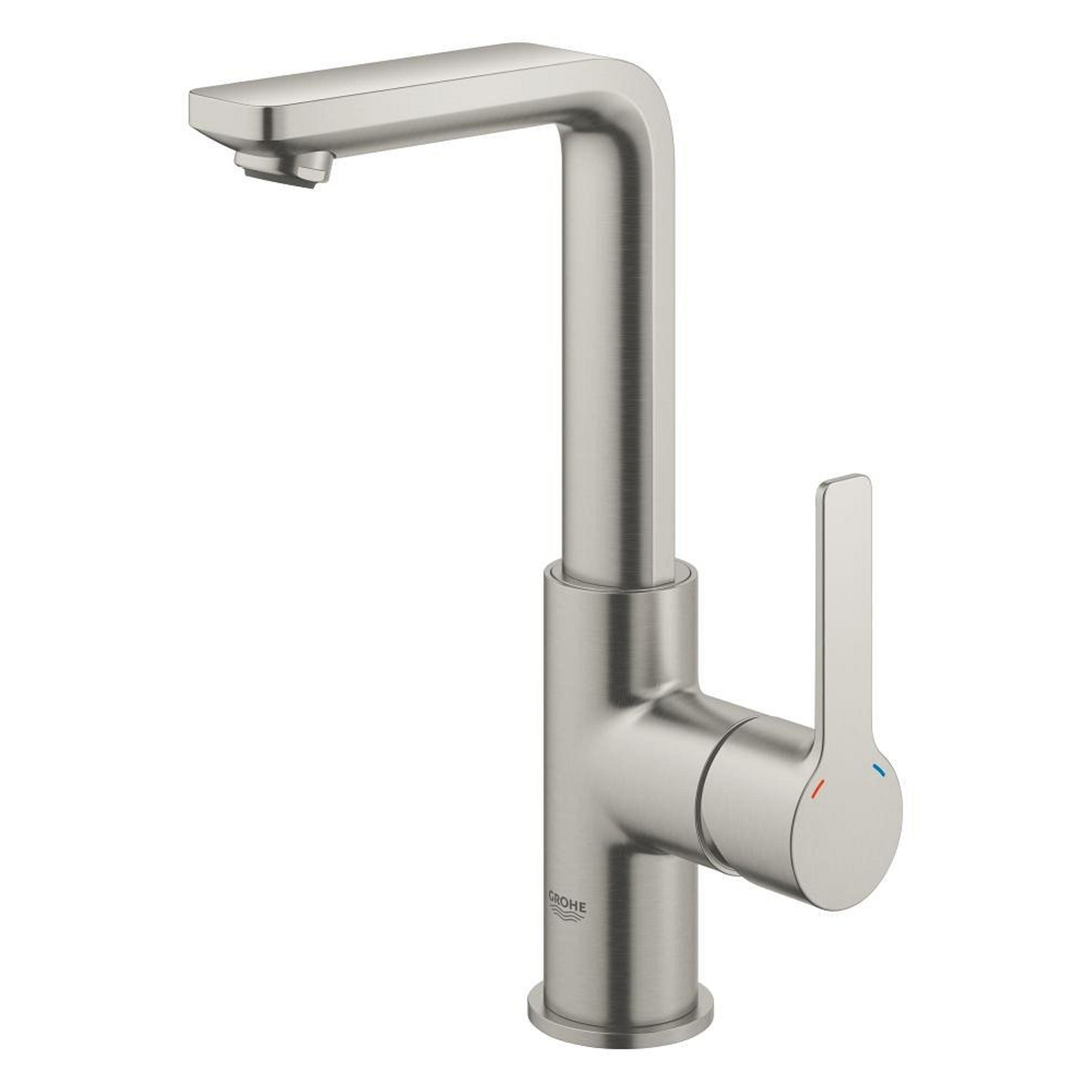 GROHE Lineare New waterbesparende wastafelkraan L-size met waste met draaibare gegoten uitloop supersteel