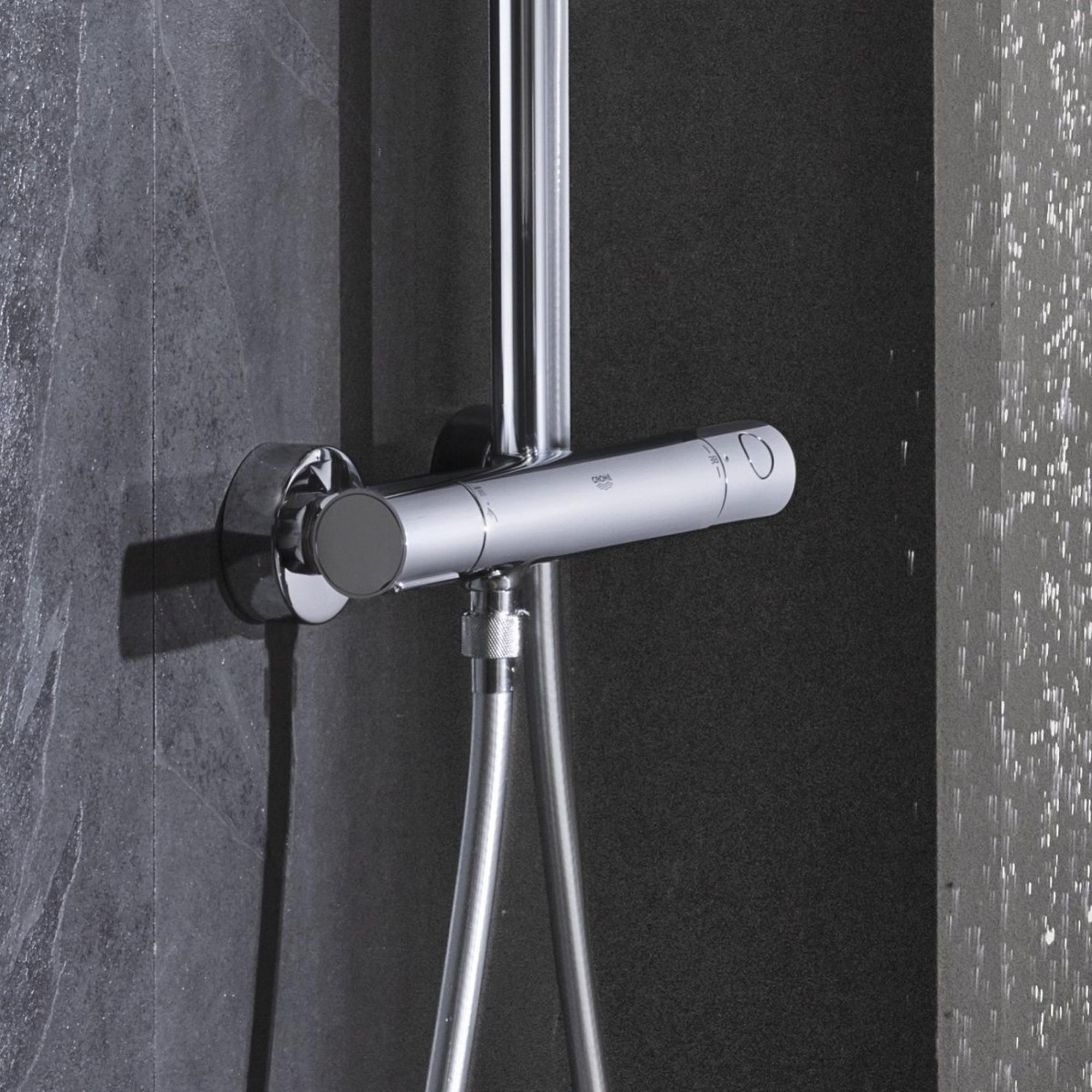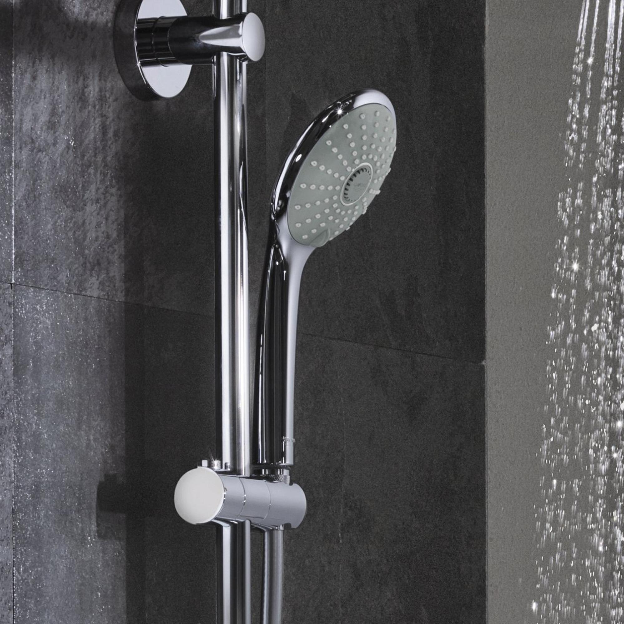 Met dit douchesysteem geniet je van optimaal gebruiksgemak en veiligheid. De thermostaatkraan met GROHE TurboStat technologie zorgt ervoor dat de watertemperatuur direct op jouw gewenste niveau is en constant blijft, zelfs bij drukwisselingen. De SafeStop functie voorkomt dat de temperatuur hoger dan 38°C gaat, wat extra veiligheid biedt, vooral voor kinderen. Wisselen tussen de hoofddouche en handdouche gaat moeiteloos dankzij de Aquadimmerfunctie. Daarnaast kun je met de handdouche kiezen uit drie verschillende straalsoorten, van een rustgevende regenstraal tot een krachtige massage. Dit alles maakt douchen niet alleen comfortabel, maar ook volledig aanpasbaar aan jouw stemming en wensen.