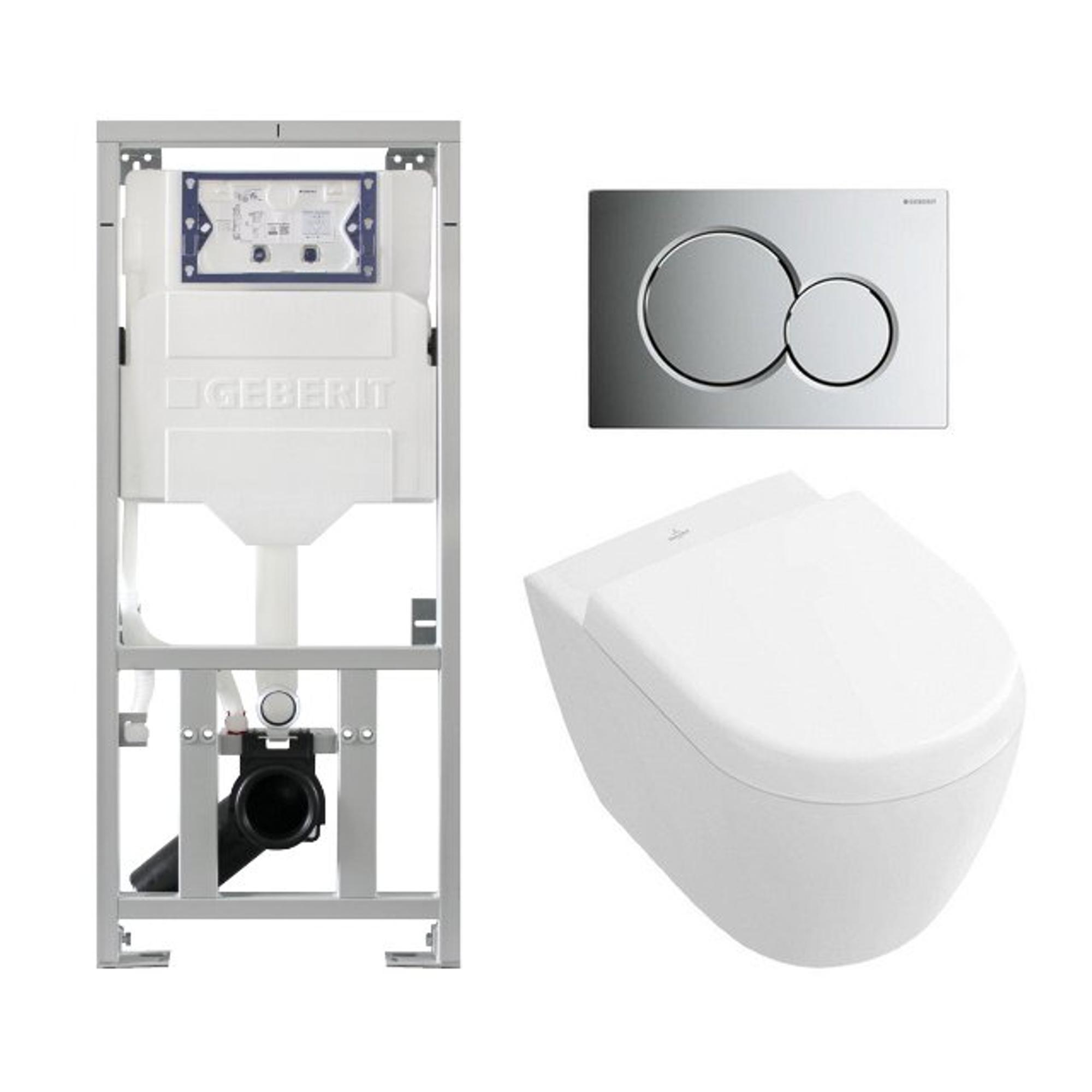 Villeroy Boch Subway 2.0 compact DirectFlush Toiletset - Geberit reservoir - bedieningsplaat glans chroom - softclose - quickrelease - wit
