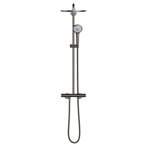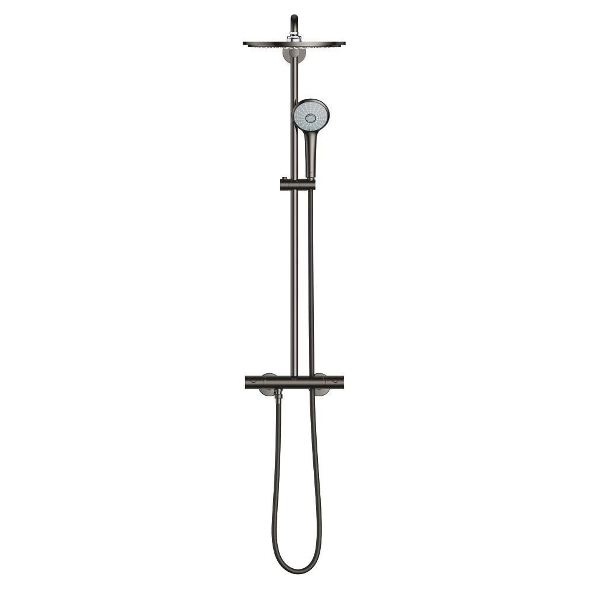 Stap onder deze royale regendouche en ervaar hoe jouw badkamer verandert in een oase van rust en luxe. Met een indrukwekkende hoofddouche van 31 cm die een zachte, gelijkmatige regenstraal verspreidt, geniet je van een ontspannende douchebeleving die je elke dag weer verfrist. De combinatie van een stijlvolle afwerking in graphite en doordachte technologieën zorgt niet alleen voor een prachtig design, maar ook voor optimaal comfort en gebruiksgemak. Dankzij de slimme thermostaatregeling blijft de watertemperatuur constant, zodat je nooit meer schrikt van plotseling koud of heet water. Bovendien helpt deze set je water en energie te besparen zonder in te leveren op de kwaliteit van je douche. Zo maak je van je badkamer een plek waar je graag tijd doorbrengt, met een gevoel van pure verwennerij en betrouwbaarheid.