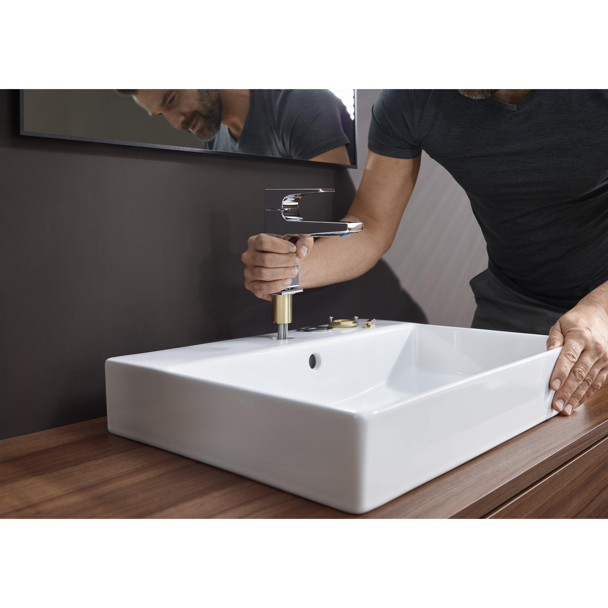 Comfort staat voorop bij deze kraan. De grote ComfortZone van 100 mm tussen uitloop en wastafel geeft je extra ruimte om handen te wassen of kleine taken uit te voeren zonder gedoe. De vlakke, rechte greep ligt prettig in de hand en reageert snel en nauwkeurig op jouw bewegingen. Dankzij de push-open waste bedien je de afvoer eenvoudig met een lichte druk, wat zorgt voor een strakke en overzichtelijke uitstraling. Deze kraan is bovendien geschikt voor gebruik met geisers, waardoor hij in vrijwel elke situatie probleemloos te installeren is.