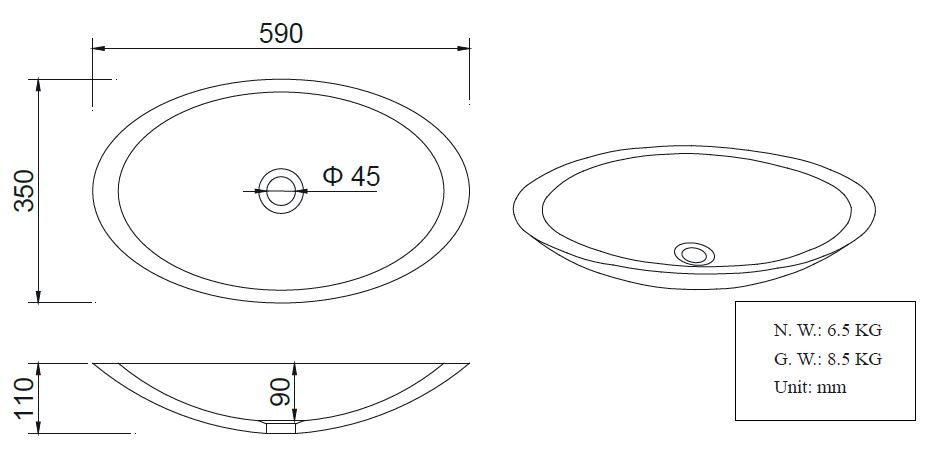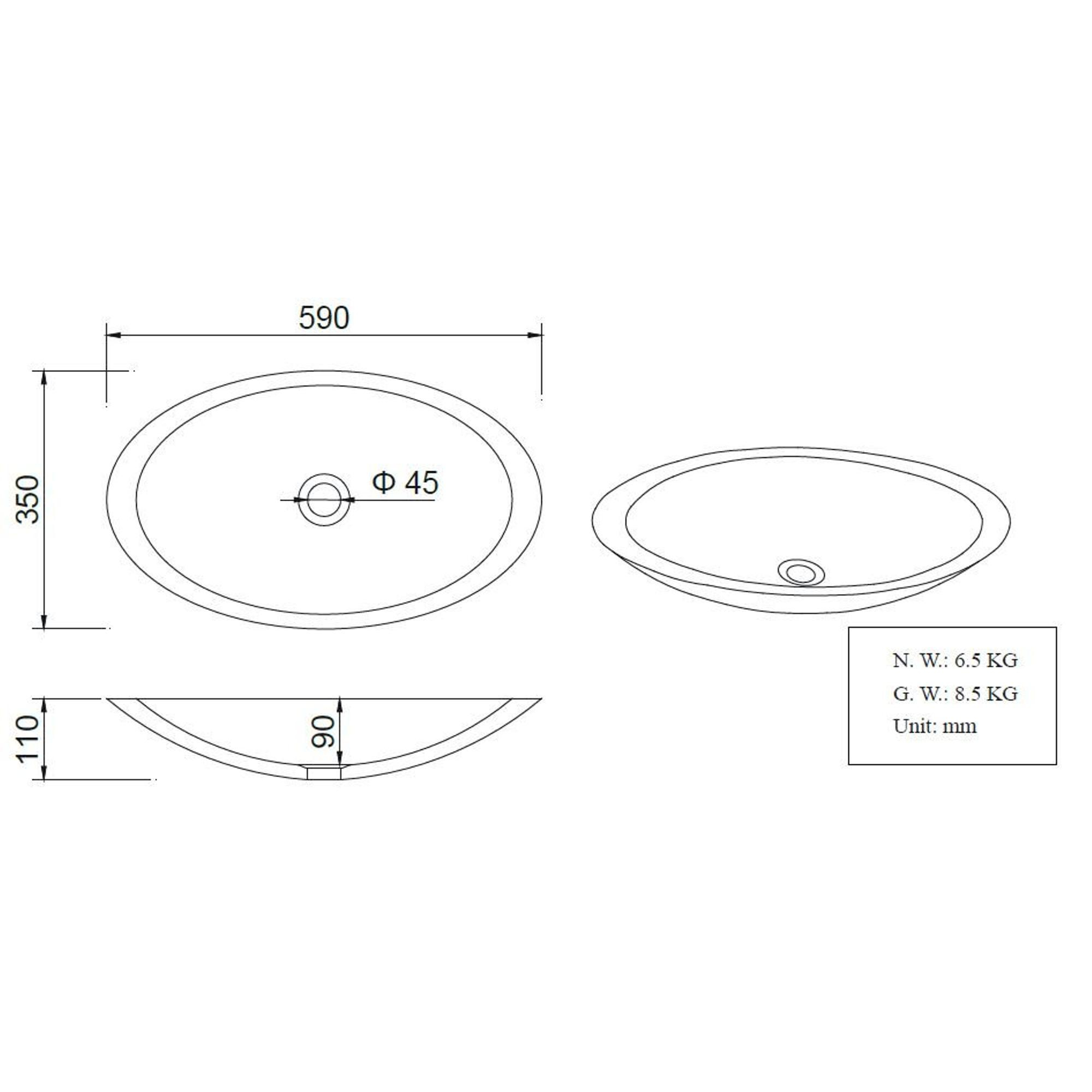 Wiesbaden Kim waskom ovaal 59 x 35 x 11 cm solid surface mat wit