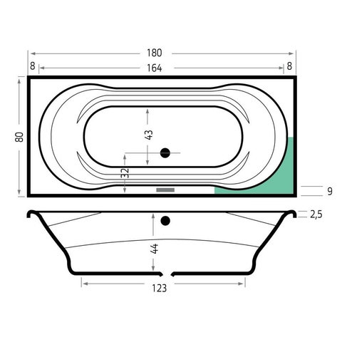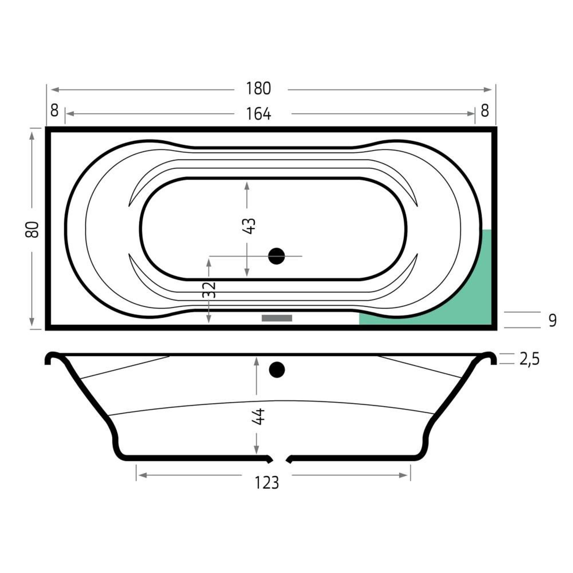 Xenz Martinique Duobad - 180x80x47 - afvoer Midden - acryl - wit