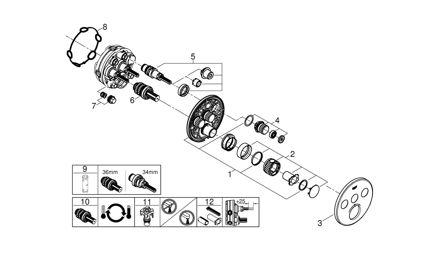 GROHE Grohtherm SmartControl inbouwkraan thermostatisch met omstel voor 3 functies rond chroom