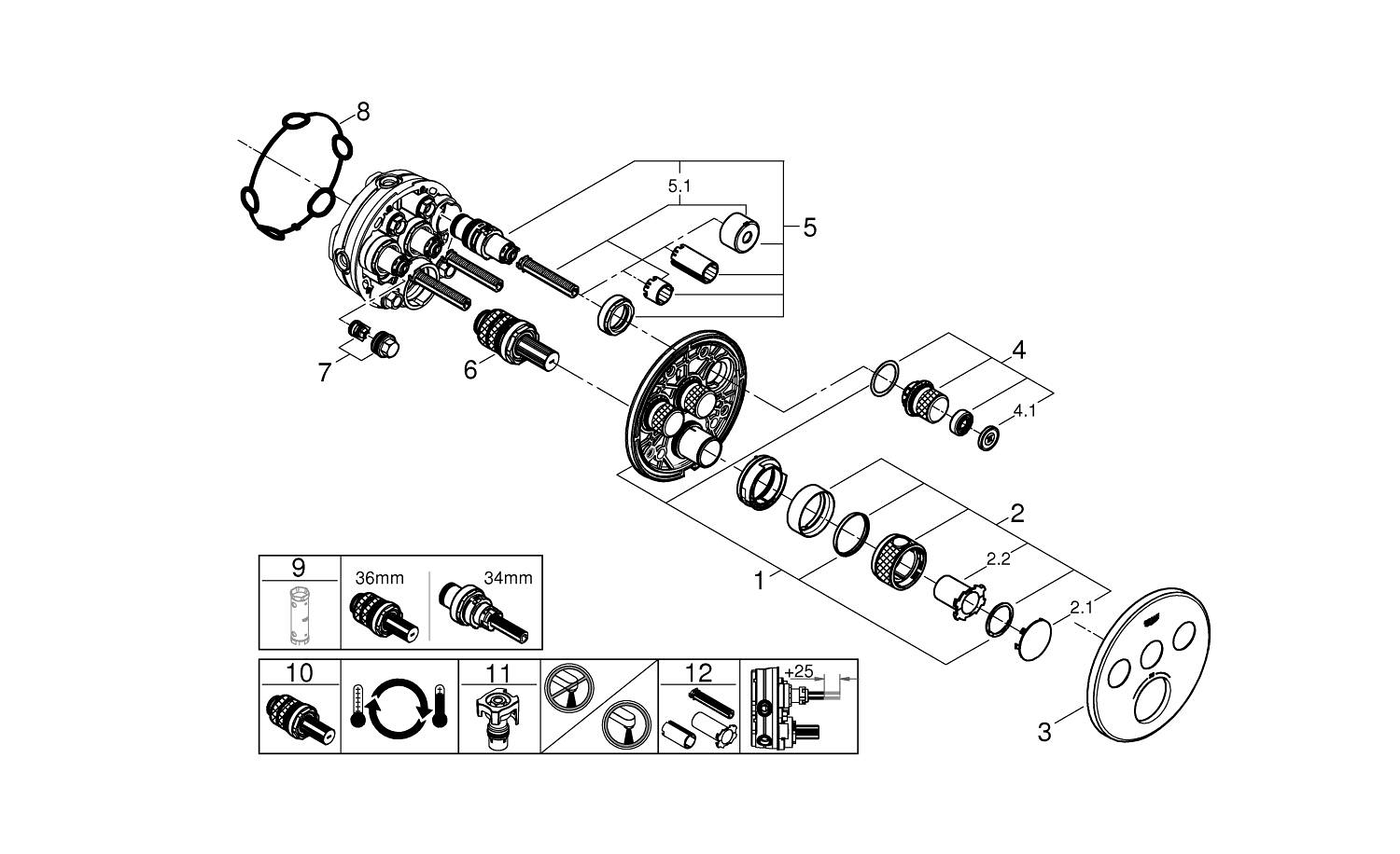 - GROHE EasyLogic iconen met verwisselbare symbolen voor intuïtieve bediening
