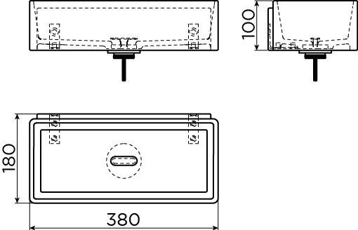 - Uitvoering zonder kranenbank, perfect te combineren met een wandgemonteerde fonteinkraan