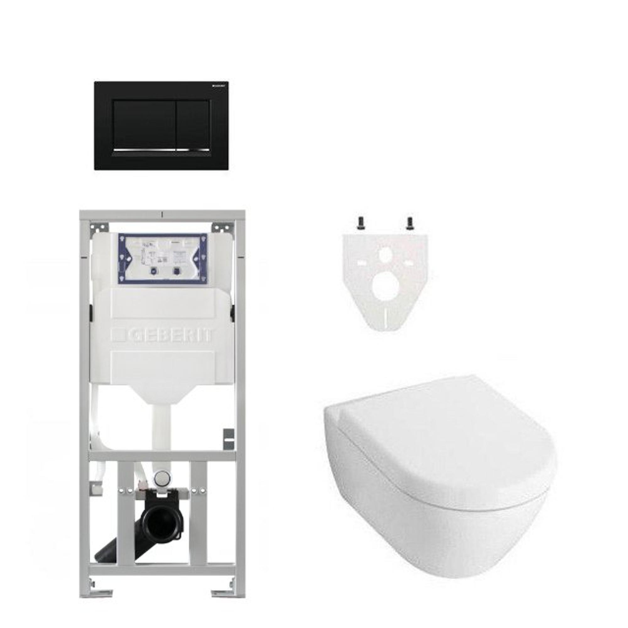 Villeroy Boch Subway 2.0 DirectFlush Toiletset - softclose - geberit reservoir - bedieningsplaat zwart sigma30 - wit