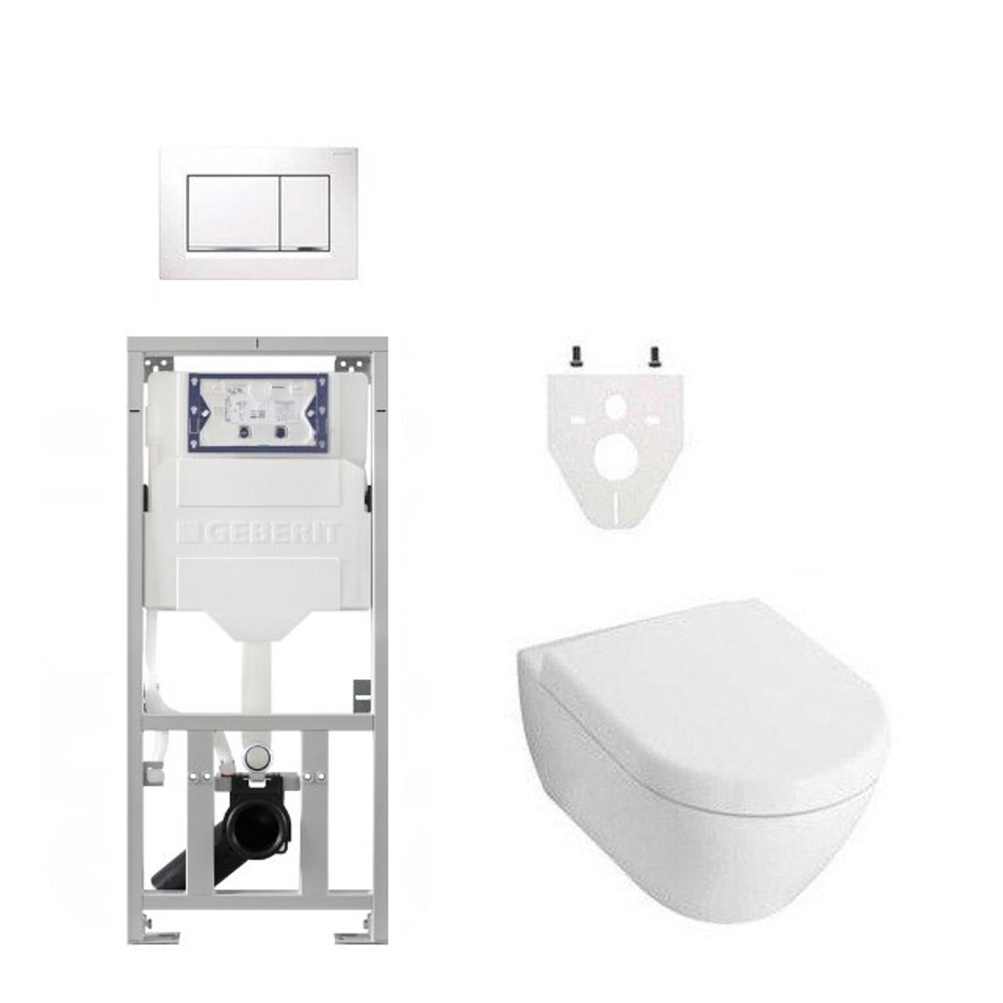 Villeroy Boch Subway 2.0 DirectFlush Toiletset - softclose - geberit reservoir - bedieningsplaat wit chroom sigma30 - wit