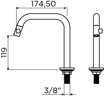 Met een diameter van slechts ongeveer 20 mm oogt deze kraan uitzonderlijk rank, wat vooral in een kleine toiletruimte een groot verschil maakt in ruimtelijkheid. De hoogte van 19,7 cm en een voorsprong van 17,5 cm zorgen ervoor dat de waterstraal mooi in het midden van de fontein uitkomt, waardoor je minder last hebt van spetters op de vloer of op de muur. De uitloophoogte van 11,9 cm biedt voldoende ruimte om comfortabel je handen te wassen, maar blijft compact genoeg voor smalle fonteintjes. Doordat de bediening rechts zit, is deze uitvoering ideaal wanneer je fontein rechts van de wand of in een specifieke hoekopstelling gemonteerd is.