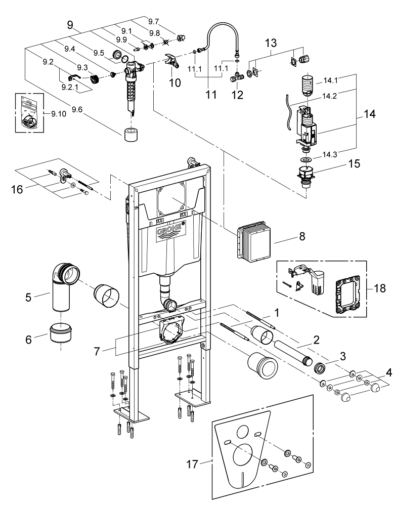 GROHE Rapid sl wc element 3-in 1 set met bedieningsplaat