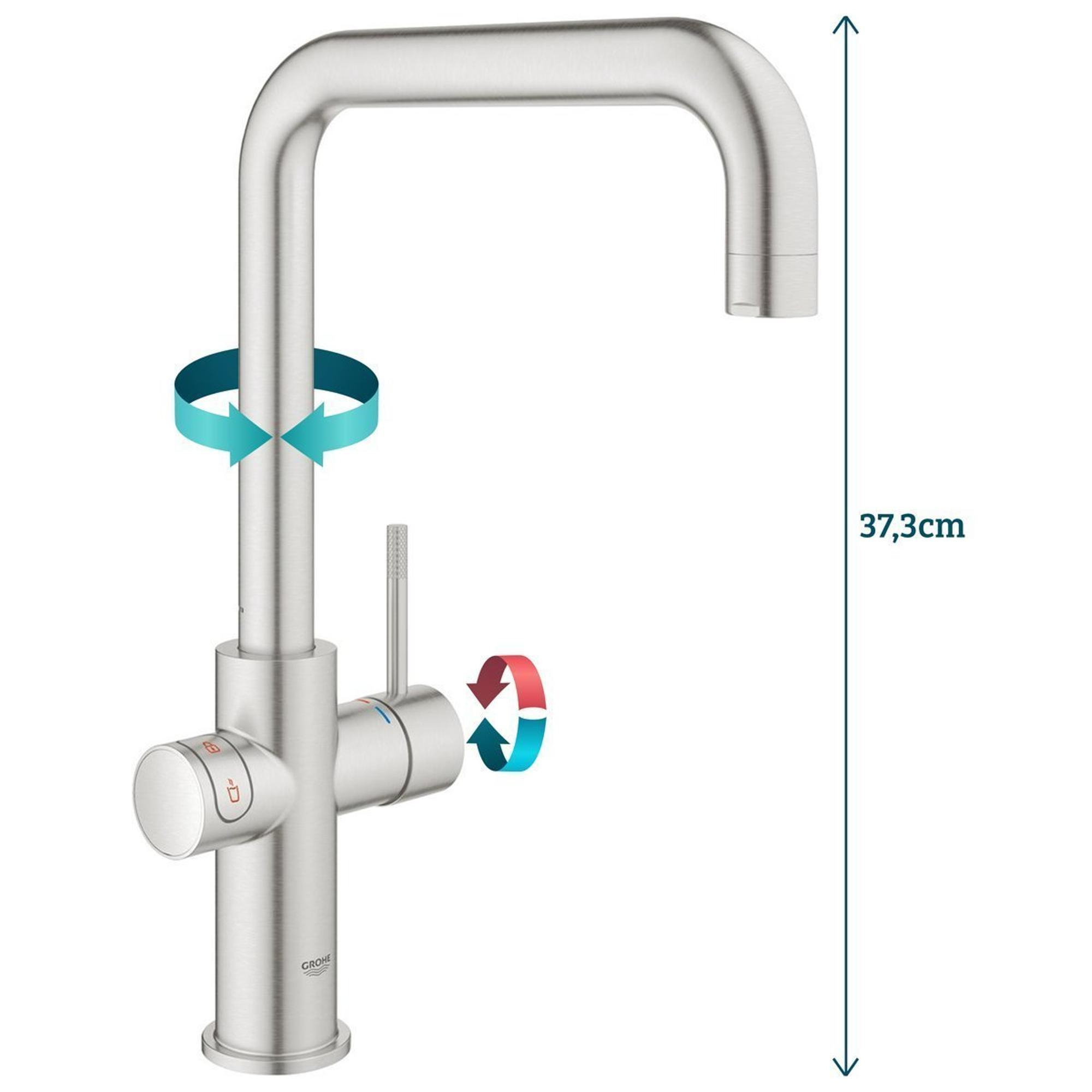 GROHE Red Keukenkraan - hoog - 3 in 1 - u uitloop - l size boiler - supersteel geborsteld