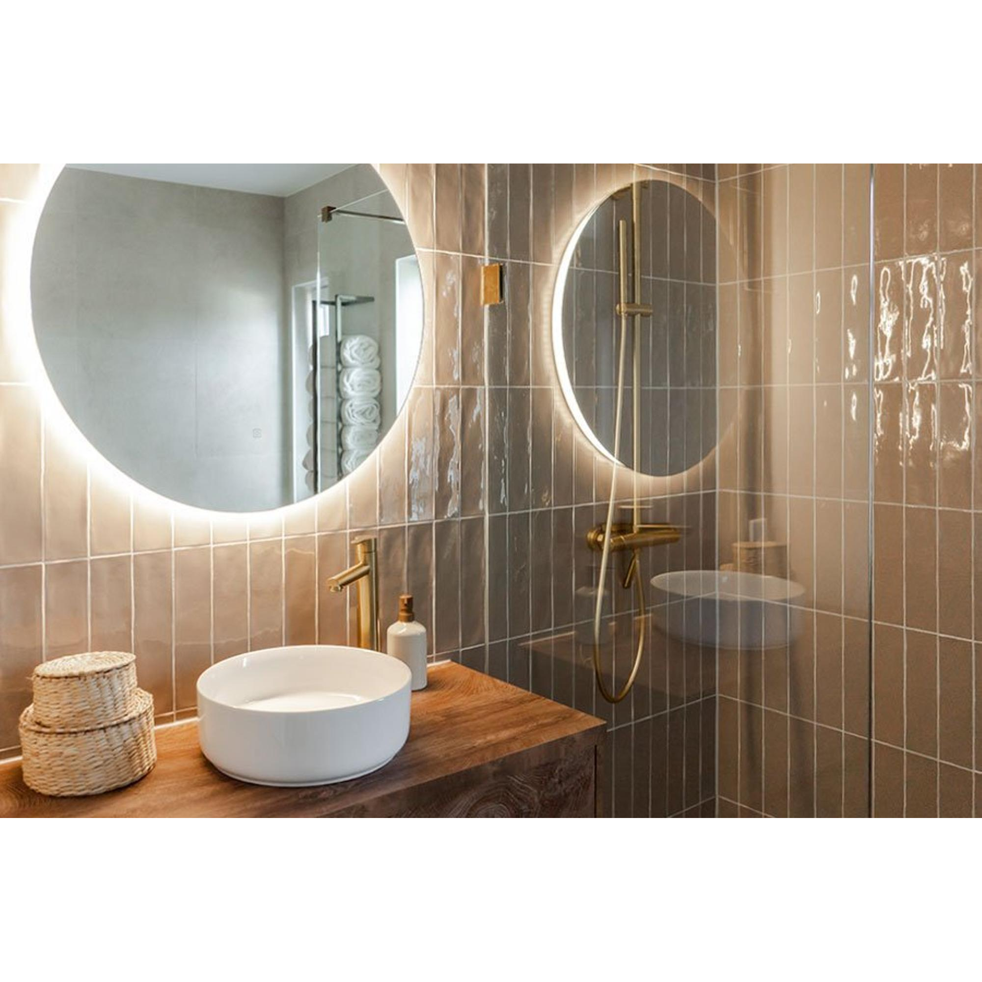Een spiegel is veel meer dan alleen een functioneel element in je badkamer; het is een stijlvol middelpunt dat sfeer en comfort toevoegt aan je dagelijkse routine. Met deze ronde spiegel van 80 cm creëer je een warme, uitnodigende ambiance dankzij de subtiele indirecte LED-verlichting die rondom de spiegel is geïntegreerd. De verlichting is dimbaar en past zich moeiteloos aan jouw wensen aan, van helder functioneel licht tot een zachte, ontspannende gloed. Dankzij de spiegelverwarming hoef je je nooit meer zorgen te maken over beslagen glas na een warme douche. De bediening via een infrarood schakelaar zorgt voor een hygiënische en eenvoudige manier om de verlichting en verwarming te activeren, zonder dat je de spiegel hoeft aan te raken. Zo wordt jouw badkamer niet alleen mooier, maar ook comfortabeler en praktischer. Deze spiegel tilt jouw badkamerervaring naar een hoger niveau en maakt elke ochtend- en avondroutine een genot.