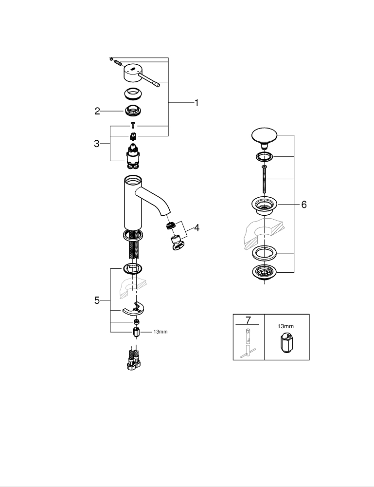 De kraan is uitgerust met een handige push-open waste die je met een lichte druk opent en sluit, wat het gebruiksgemak verhoogt. Dankzij het FastFixation Plus systeem is de installatie snel en eenvoudig, zelfs als je geen ervaren klusser bent. De hendel met GROHE SilkMove ES technologie zorgt ervoor dat in de middelste stand alleen koud water stroomt, waardoor je energie bespaart zonder in te leveren op comfort. Zo combineert deze kraan moeiteloos gebruiksgemak met slimme functies.