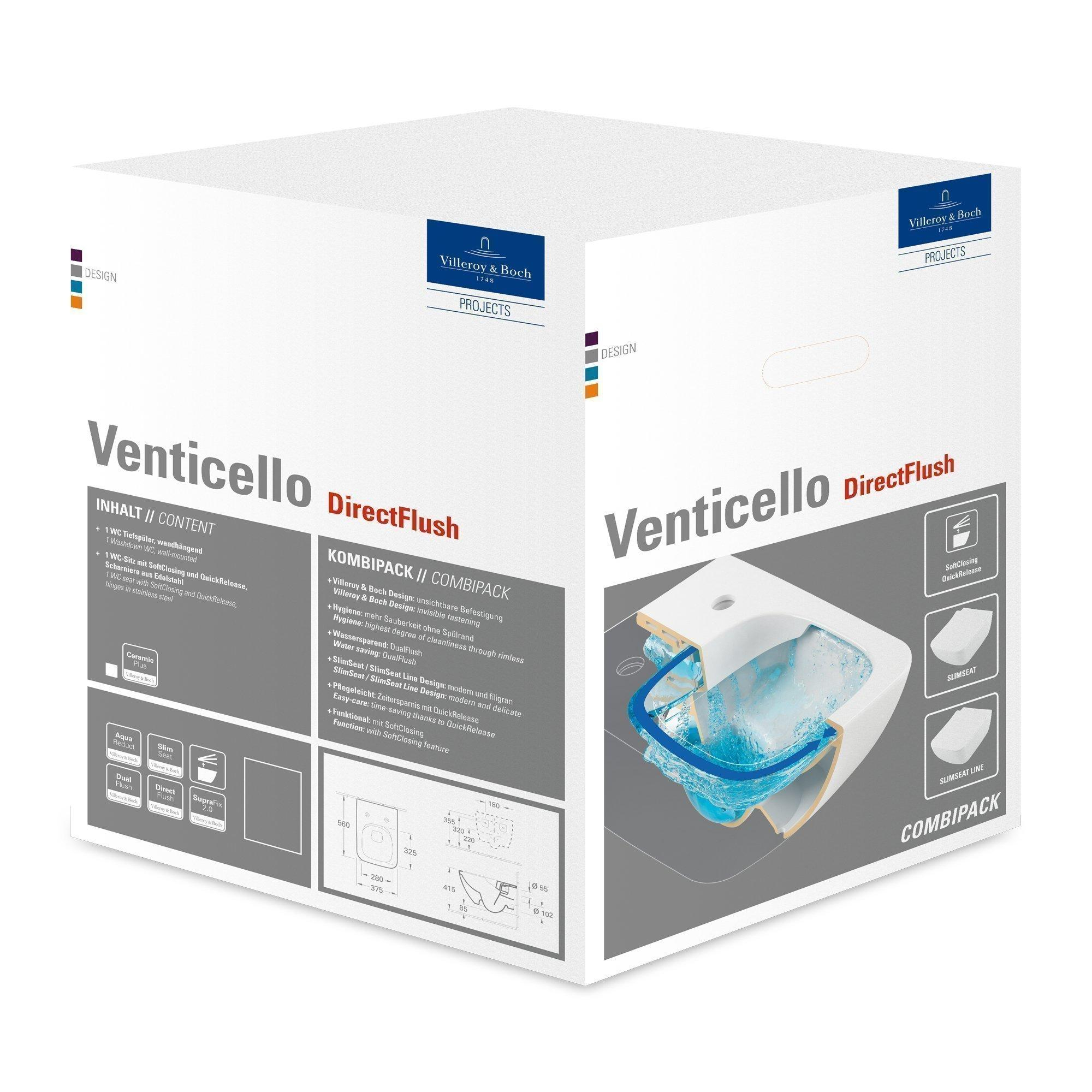 Villeroy & Boch Venticello wandcloset - 56x37.5cm - zonder spoelrand - Diepspoel - met softclose & quickrelease zitting - CeramicPlus - glans wit