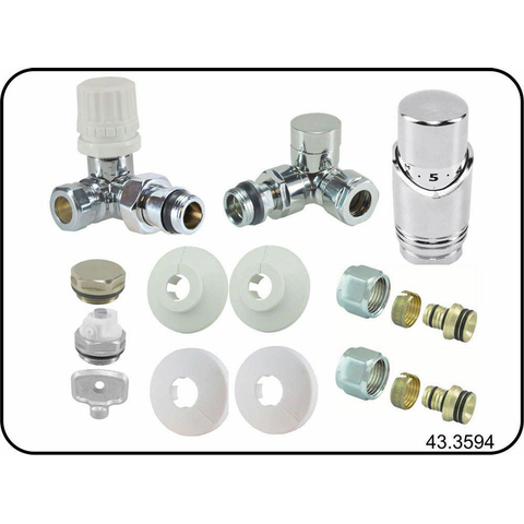 Riko luxe therm.rad.aansluitset haaks verkeerd rechts chroom