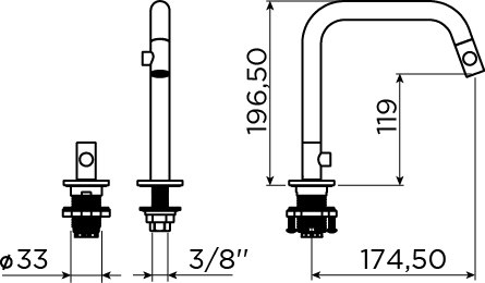 Ergonomische bediening links van de uitloop