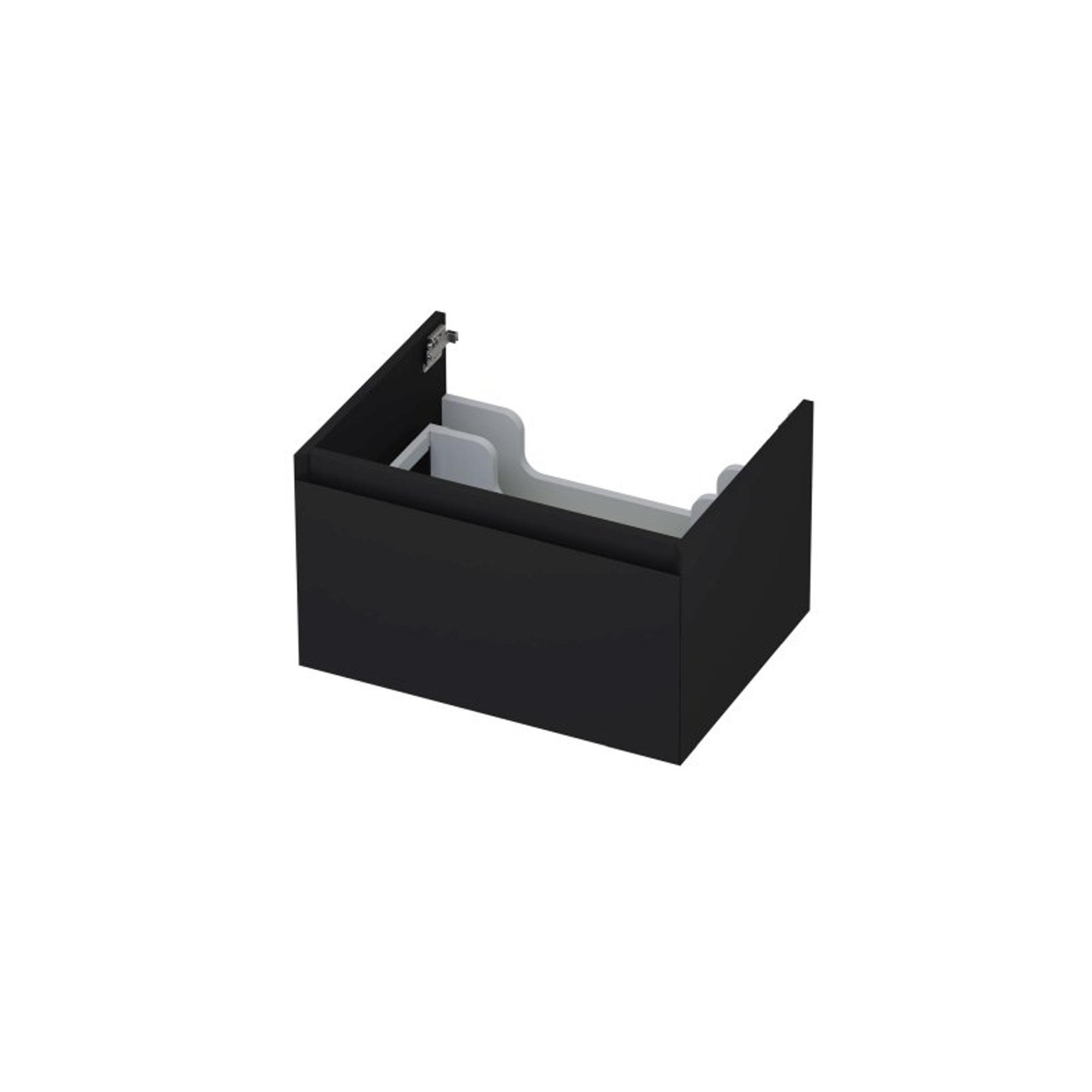 - Moderne INK Wastafelonderkast - 60x45x35cm - 1 lade - greeploos - MDF lak - Zwart mat voor een strakke badkamerinrichting