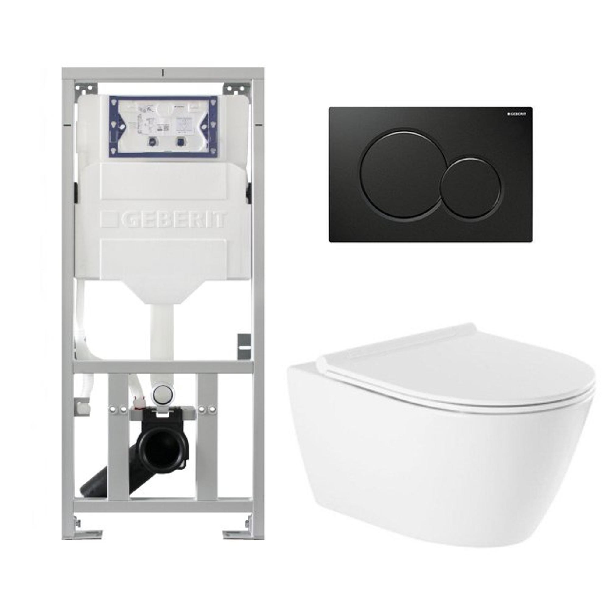 QeramiQ Salina Toiletset - rimless - diepspoel - softclose - quickrelease zitting - Geberit Sigma01 bedieningsplaat gitzwart - wit
