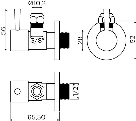 Dankzij de compacte afmetingen - hoogte circa 5,6 cm, diepte 6,6 cm en diameter 5,2 cm - is deze hoekstopkraan uitstekend geschikt voor kleine ruimtes zoals toiletten of compacte badkamers. De haakse uitvoering en buitendraad-aansluiting 1/2" x 3/8" sluiten aan op gangbare installaties, waardoor montage voor de installateur of handige doe-het-zelver overzichtelijk blijft. Inclusief knelmoer en krimpkous heb je alles bij de hand om de aansluiting netjes te realiseren. Zo profiteer je van een oplossing die niet alleen mooi is om te zien, maar ook functioneel sterk doordacht is.