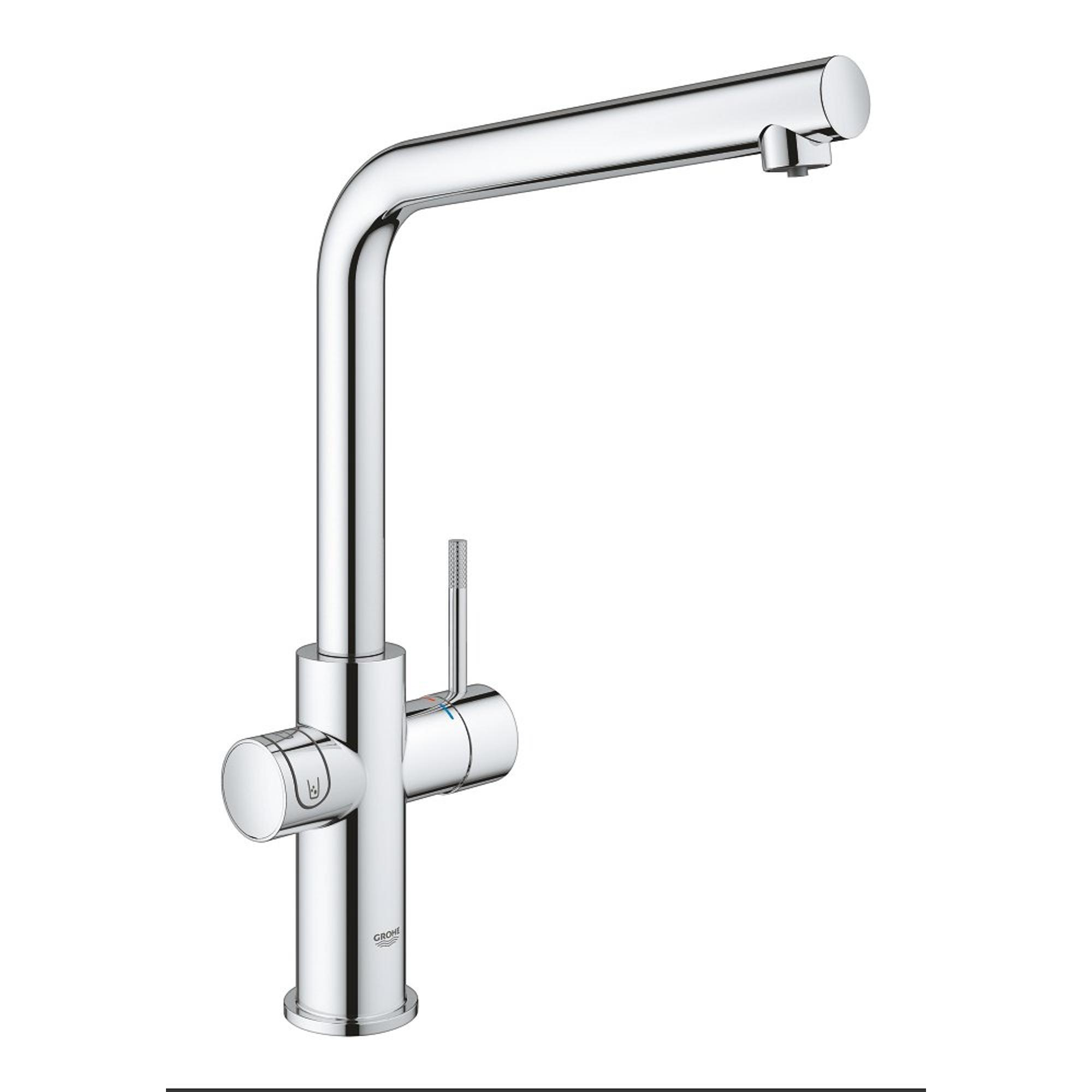 GROHE Blue Home Keukenkraan - L-Uitloop - 1-gats - filterfunctie - plat licht en bruisend water - chroom