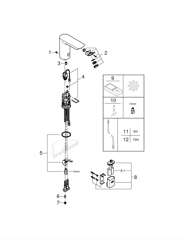 GROHE Bau Cosmopolitan waterbesparende elektronische wastafelkraan met infrarood met batterij 6V chroom