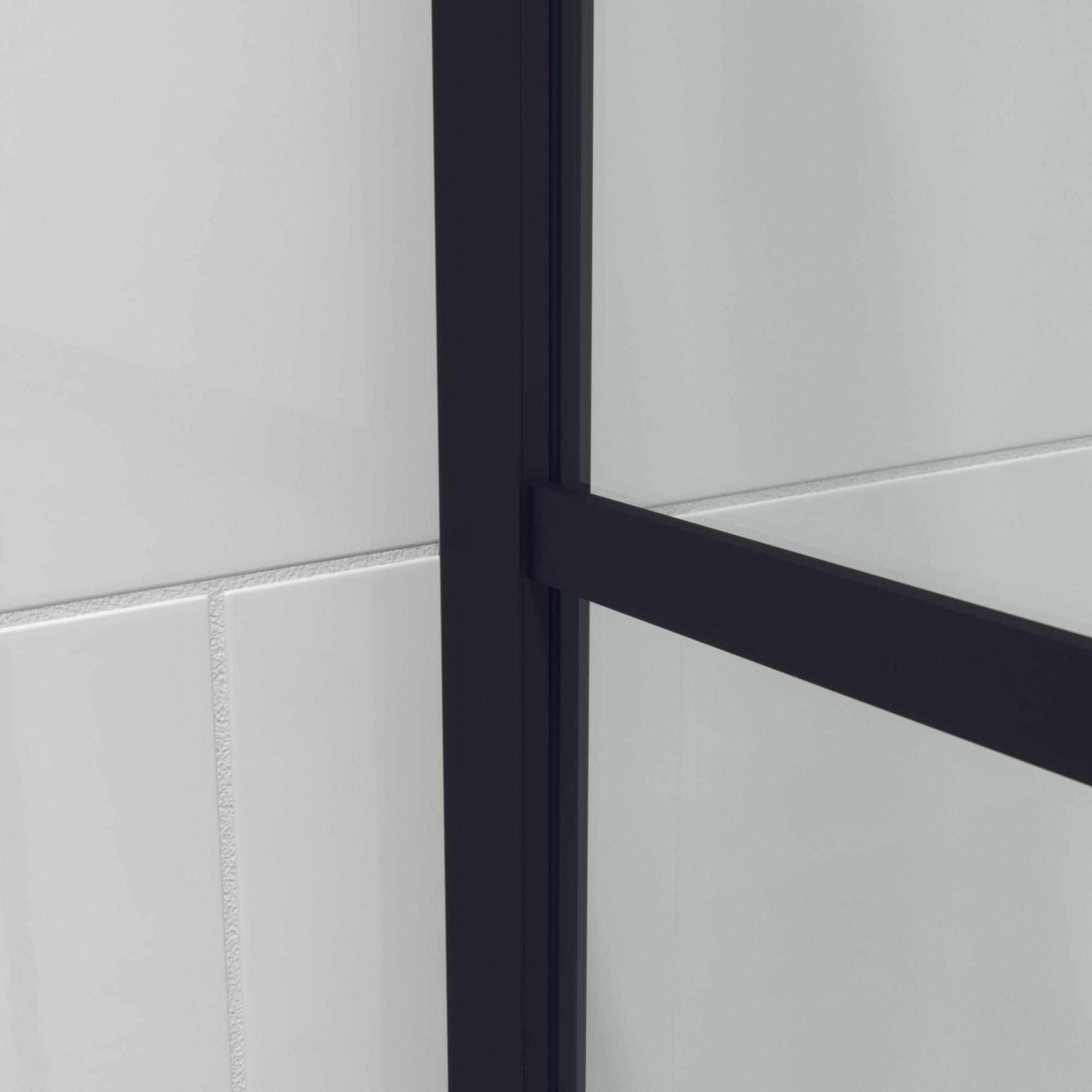 De combinatie van helder veiligheidsglas en een mat zwart aluminium frame geeft deze inloopdouche een tijdloze en verfijnde uitstraling. Het strakke design met het zogenaamde 'windows frame' aan de buitenzijde zorgt voor een subtiel accent dat jouw badkamer een exclusieve look geeft. Dit maakt het niet alleen een functioneel element, maar ook een echte blikvanger. Door de neutrale kleuren en het minimalistische profiel past deze douchewand perfect in zowel moderne als industriële badkamers. Zo creëer je een stijlvolle ruimte die uitnodigt tot ontspanning.