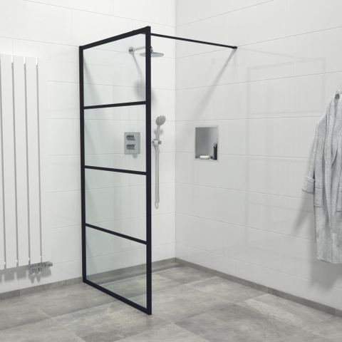 Stel je voor: een badkamer die niet alleen functioneel is, maar ook een oase van rust en stijl uitstraalt. Met deze inloopdouche transformeer je jouw badkamer in een moderne en uitnodigende ruimte waar je elke dag weer van geniet. Het heldere glas zorgt voor een open en lichte uitstraling, terwijl het mat zwarte frame met lines aan de buitenzijde een subtiel, maar krachtig designaccent toevoegt. Dankzij de antikalklaag blijft het glas langer helder en gemakkelijk schoon te houden, wat je veel onderhoudscomfort biedt. Deze douchewand combineert moeiteloos elegantie met praktische voordelen, waardoor je badkamer er niet alleen prachtig uitziet, maar ook prettig in gebruik is. Zo maak je van douchen een moment van ontspanning en luxe in je eigen huis.