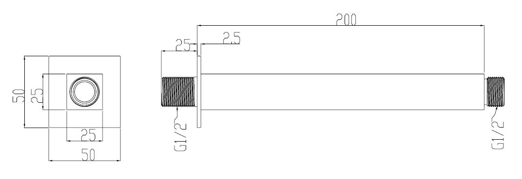 Luxe douche-arm vierkant plafondbev. 20cm mat-zwart