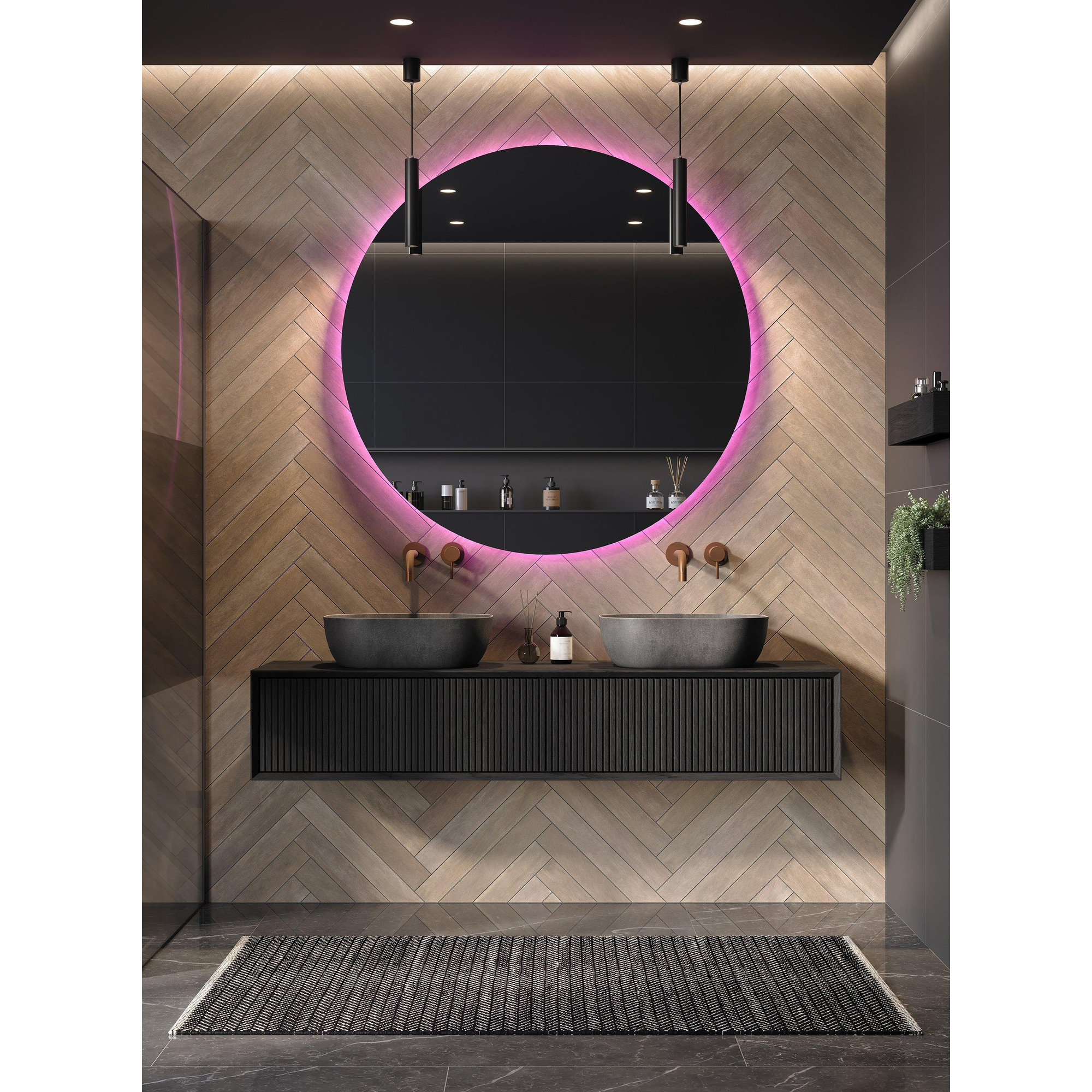 De Looox Cm line CM line Spiegel onderscheidt zich door zijn stijlvolle uitstraling. Het ronde design geeft een moderne touch aan elke ruimte, terwijl de RGBW-Led verlichting zorgt voor een luxe uitstraling. Deze spiegel is een eyecatcher die de algehele uitstraling van je badkamer naar een hoger niveau tilt. Met zijn strakke lijnen en hoogwaardige afwerking is deze spiegel een must-have voor liefhebbers van elegantie.