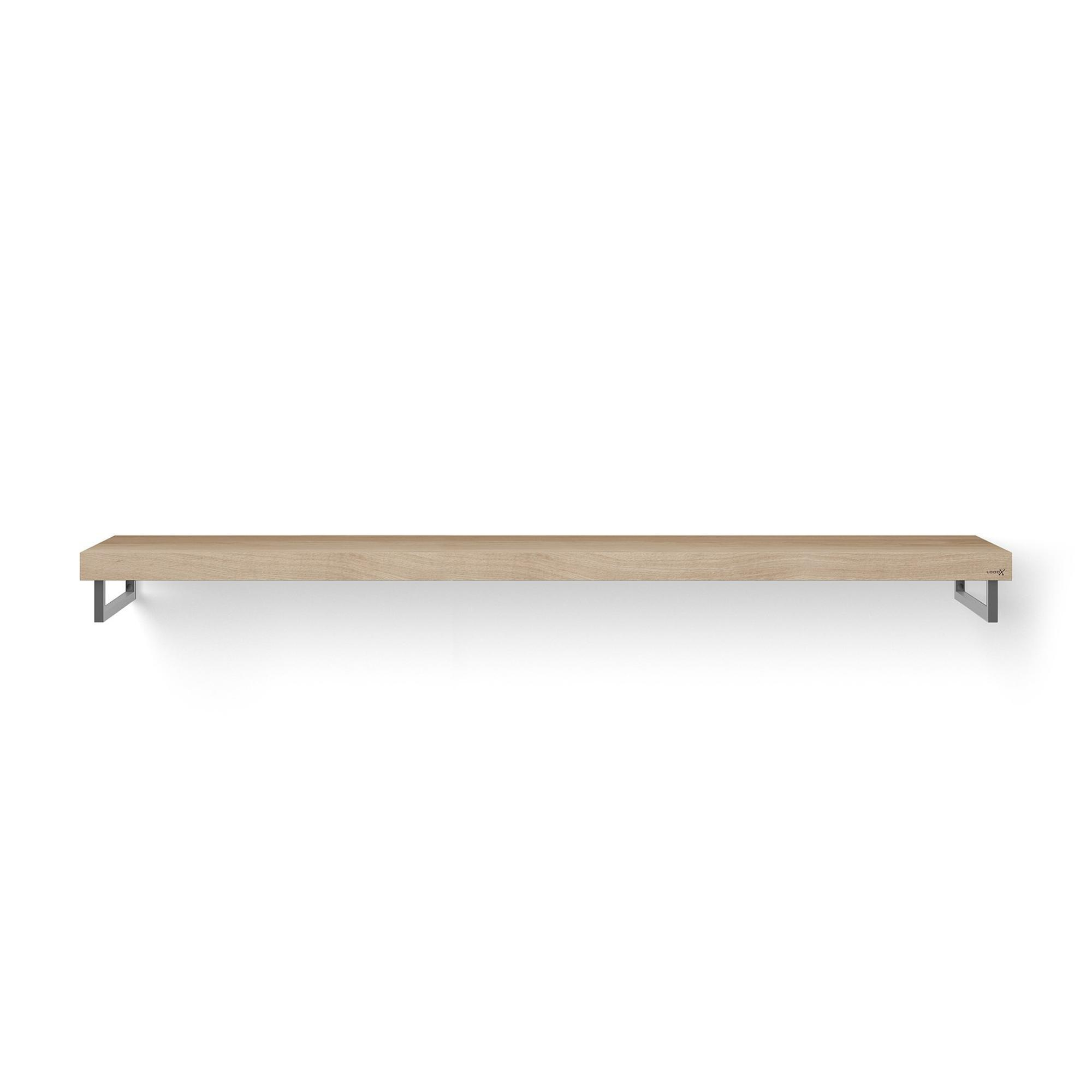 Looox Wood collection Solo wastafelblad - 200x46cm - Met handdoekhouder RVS geborsteld - Massief eiken Old grey