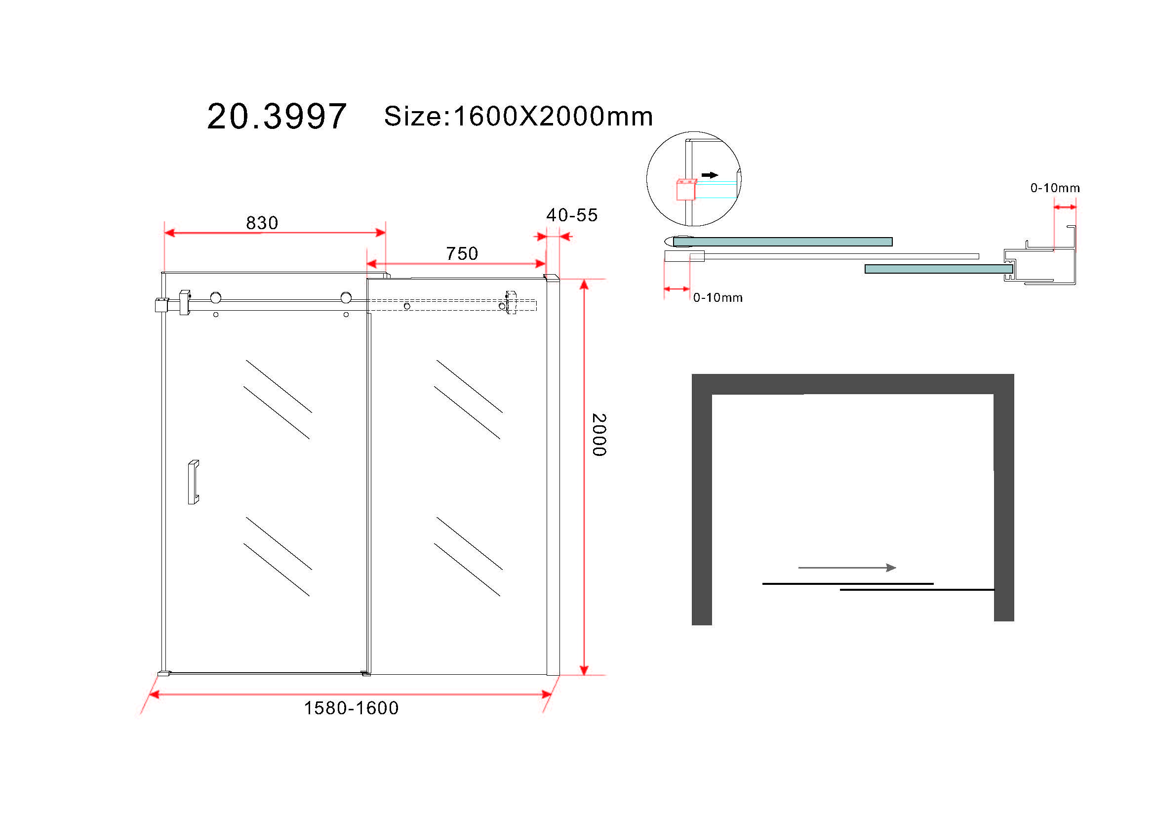Wiesbaden Slide nis schuifdeur 1600 x 2000 x 8 mm nano helder glas/chroom
