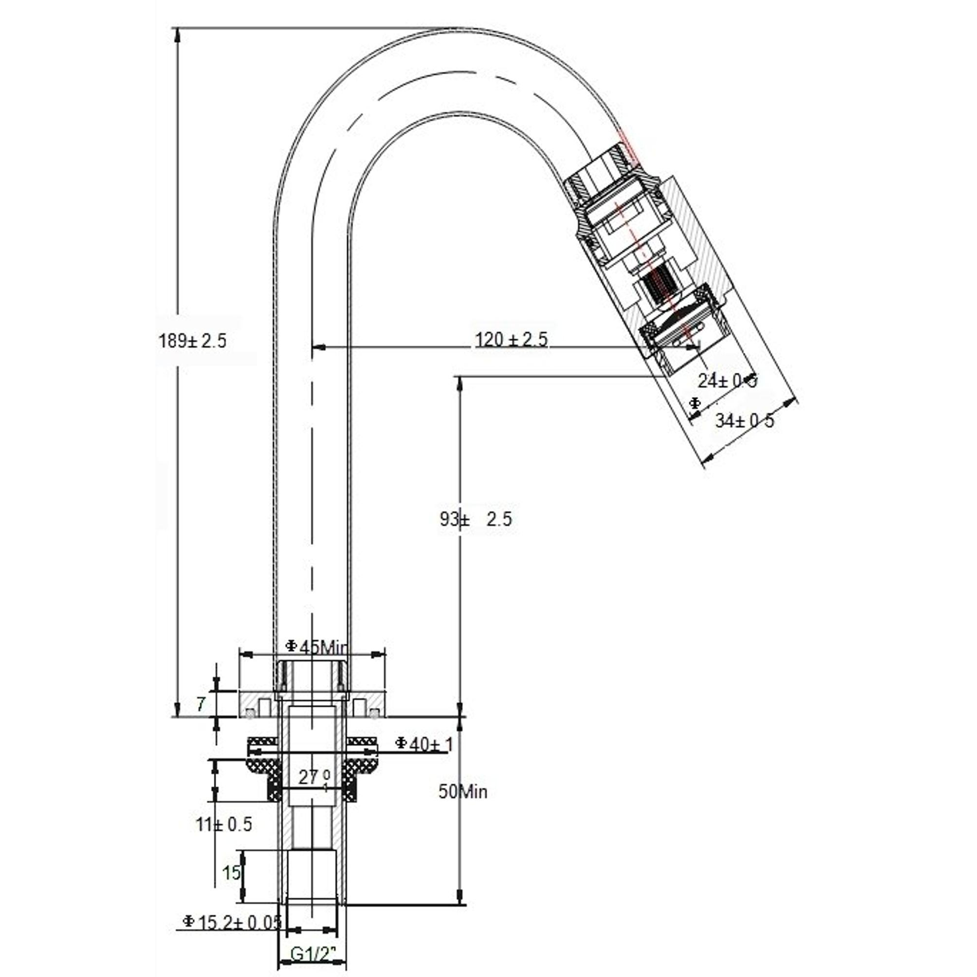 Met het 1/4 slag keramische binnenwerk geniet je van een kraan die soepel en nauwkeurig te bedienen is. Dit mechanisme is bestand tegen slijtage en voorkomt lekkages, waardoor je jarenlang zorgeloos gebruik hebt. De hoogte van 190 mm en een sprong van 120 mm maken deze kraan compact maar toch praktisch, zodat je voldoende ruimte hebt om je handen te wassen zonder te knoeien. De aansluiting met 1/2 inch buitendraad is standaard en eenvoudig te monteren, wat installatiegemak biedt voor zowel doe-het-zelvers als professionals.